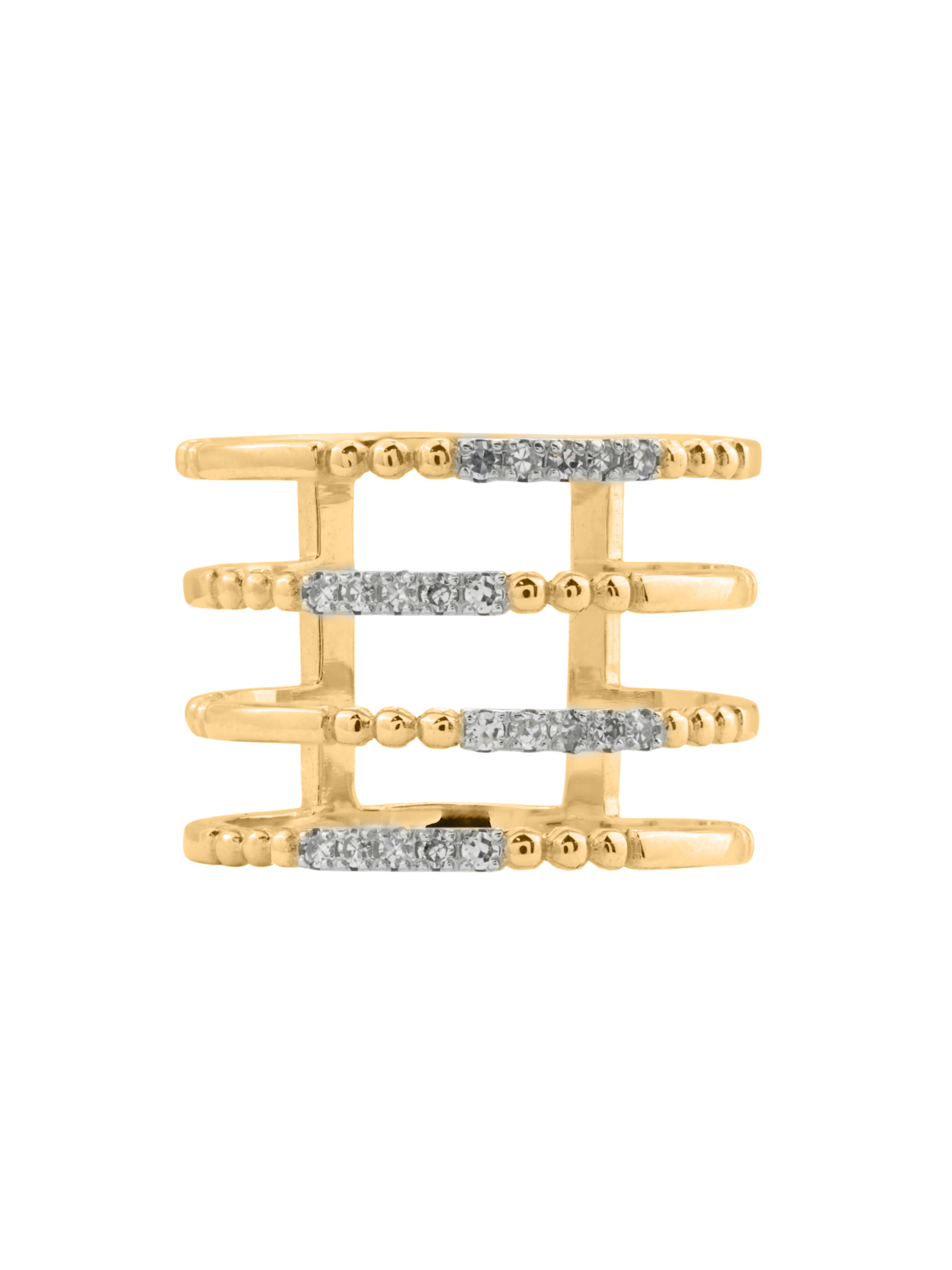 Эффектное кольцо из лимонного золота 585 пробы станет центральным акцентом вашего образа, подчеркивая статус и безупречный вкус. Ювелирное изделие из коллекции De Luxe Бриллианты — Balls привлекает внимание своим архитектурным дизайном: композиция из нескольких тонких шинок, декорированных изящными шариками, создает выразительный объем и динамику. Необычная фактура металла великолепно сочетается с благородным блеском вставок.