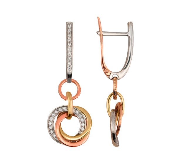 Серьги из красного золота 585 пробы c бриллиантами