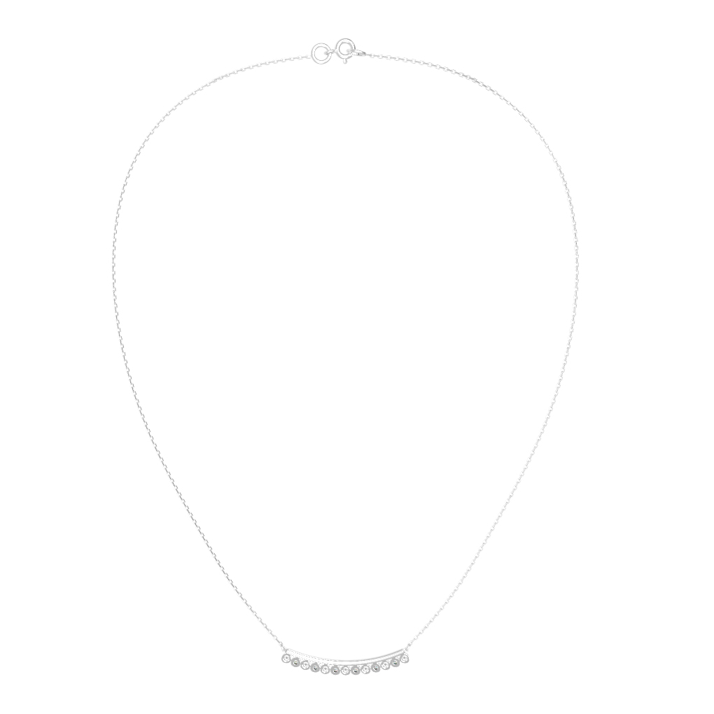 Элегантное колье из белого золота 585 пробы станет утонченным дополнением вашего образа. Это украшение, входящее в коллекцию De Luxe Бриллианты — Cashmere, воплощает лаконичность и благородный блеск драгоценных металлов. Центральный декоративный элемент, выполненный в форме изящной дуги, инкрустирован 18 сверкающими бриллиантами круглой формы с белым оттенком вставок. Чистота камней подчеркивает холодное сияние металла, создавая гармоничный и завершенный дизайн.