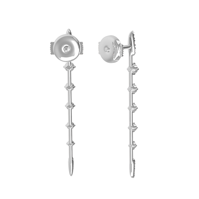 Особое внимание привлекает искусная инкрустация: серьги украшены 22 бриллиантами классической круглой формы. Белый цвет вставок гармонично сочетается с холодным сиянием белого золота, создавая единую, завершенную композицию. Чистота камней и мастерство огранки позволяют украшению играть светом при каждом повороте головы, придавая облику нотки роскоши и утонченного шика. Эти серьги — выбор тех, кто ценит минимализм, выраженный в дорогих материалах и высоком качестве исполнения. Универсальность модели делает ее идеальным спутником как для торжественного выхода, так и для статусных повседневных образов, подчеркивая индивидуальность и уверенность в себе.