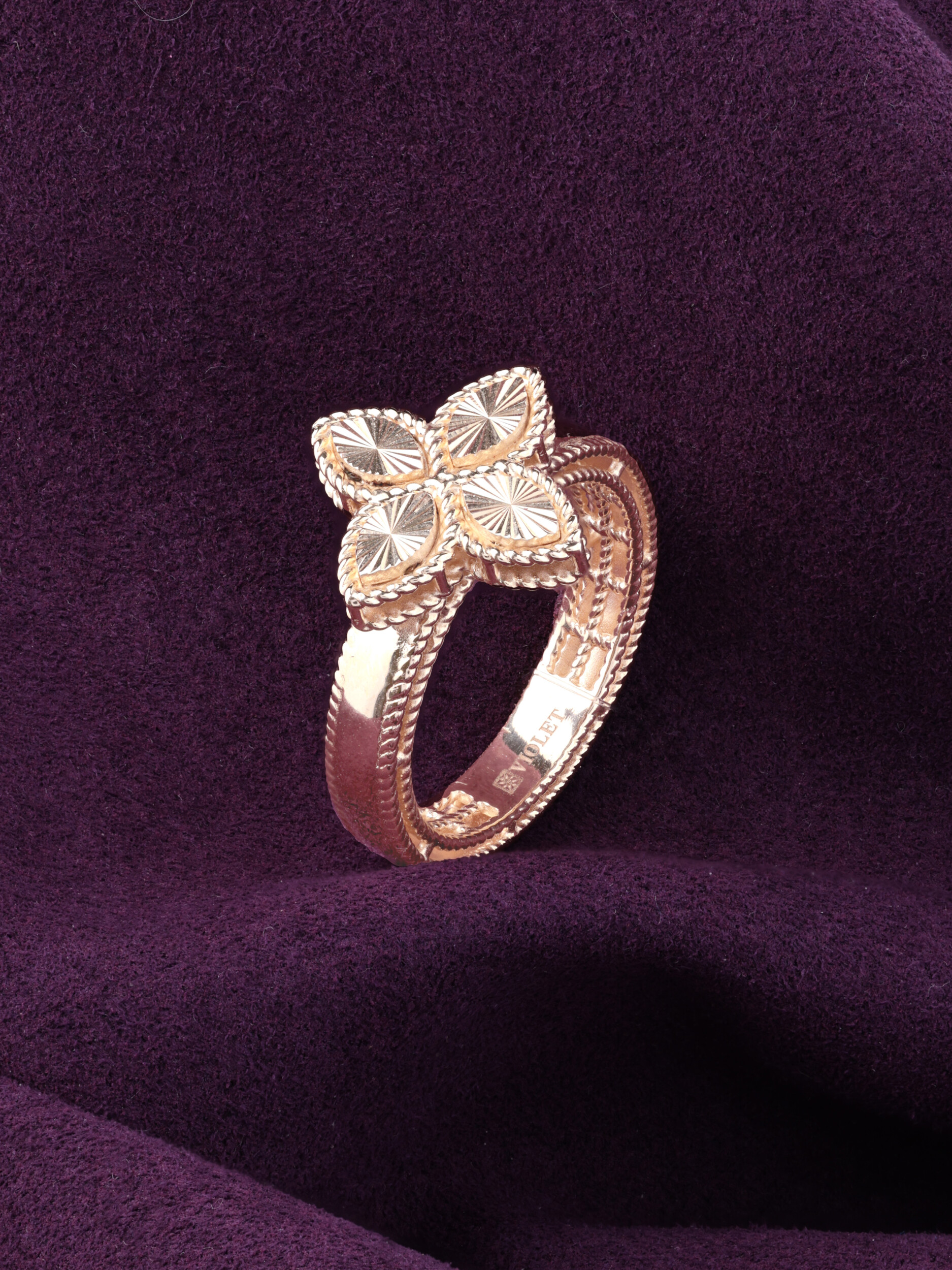 Это изысканное кольцо-клевер выполнено в теплом красном цвете золота, который идеально сочетается с любым типом внешности. Модель универсальна и подходит как для женщин, так и для мужчин, предпочитающих лаконичные, но выразительные аксессуары. Благодаря своему дизайну, изделие гармонично впишется в повседневный стиль, дополнит деловой костюм или станет центральным элементом вечернего наряда. Рекомендуем обратить внимание на возможность собрать полноценный комплект, дополнив кольцо другими украшениями в схожей стилистике.