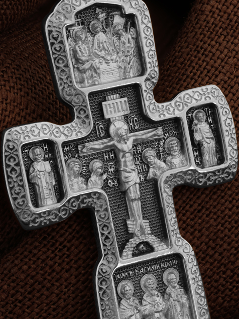 В центральной части оборота креста изображен Георгий Победоносец — покровителем и защитником воинов.