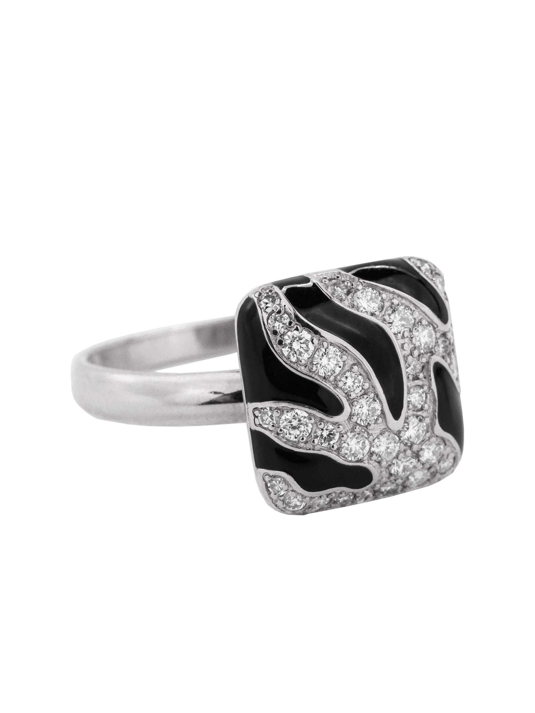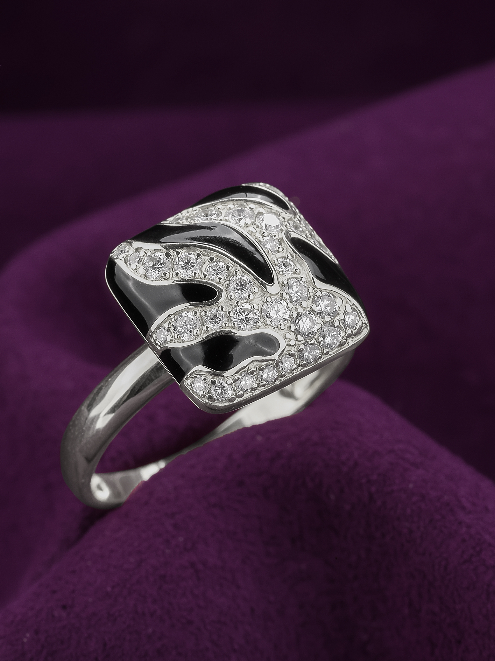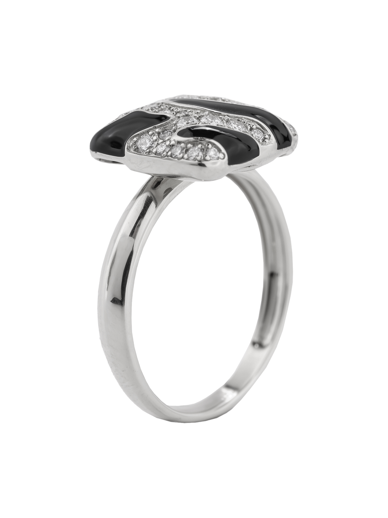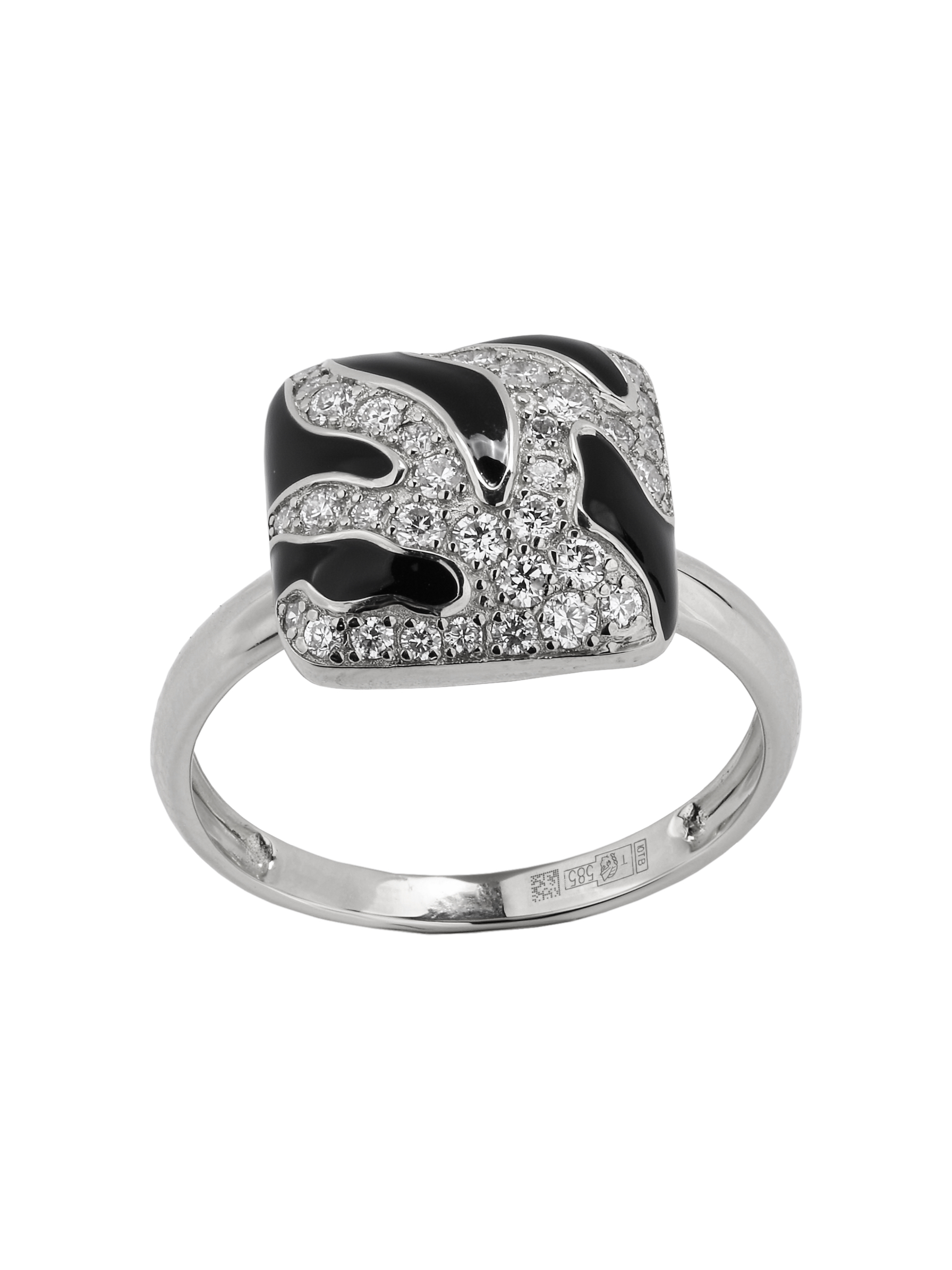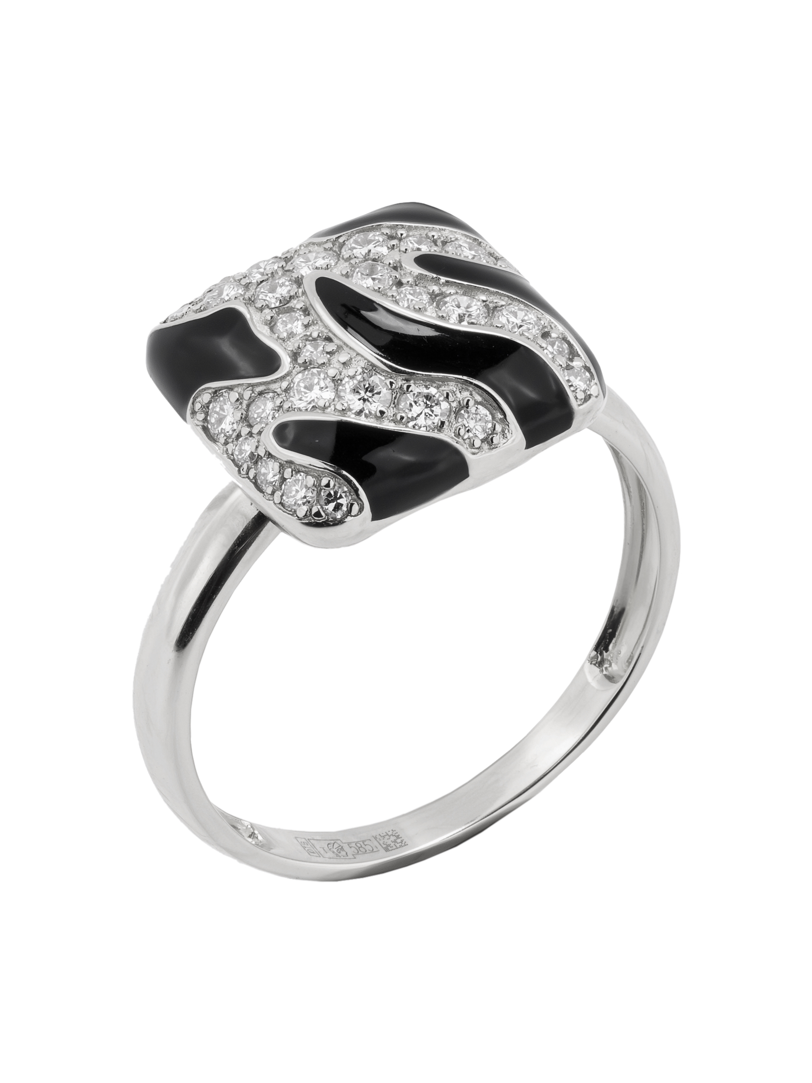 Кольцо из белого золота 585 пробы c эмалью и бриллиантами