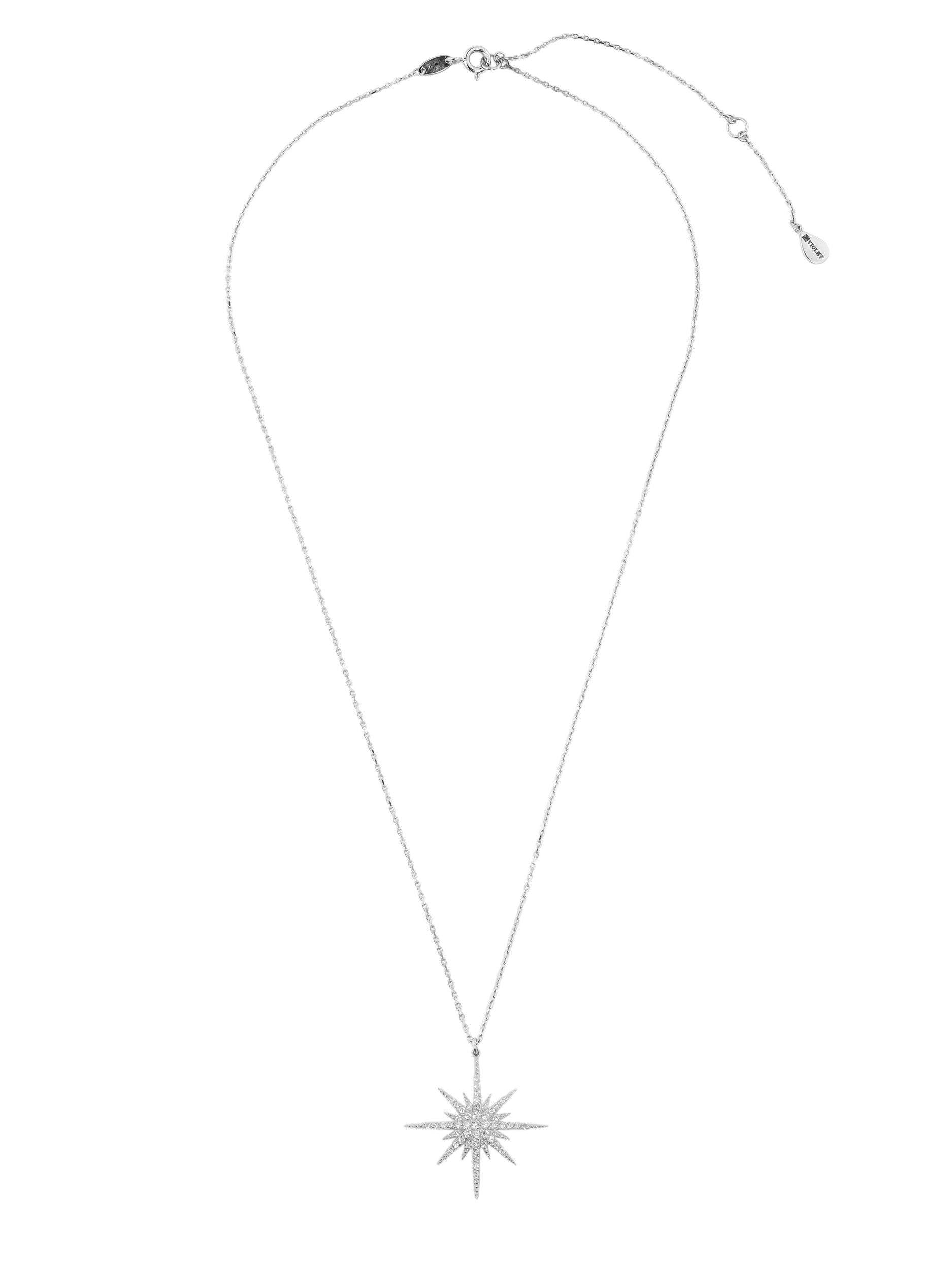 Изысканное колье из белого золота 585 пробы станет центральным акцентом вашего образа, привнося в него нотки аристократизма и утонченности. Дизайн изделия, вдохновленный небесными светилами, воплощает в себе эстетику коллекции De Luxe Бриллианты — Galaxy. Центральный элемент колье выполнен в форме многогранной звезды, которая завораживает своим сиянием и мастерством исполнения.