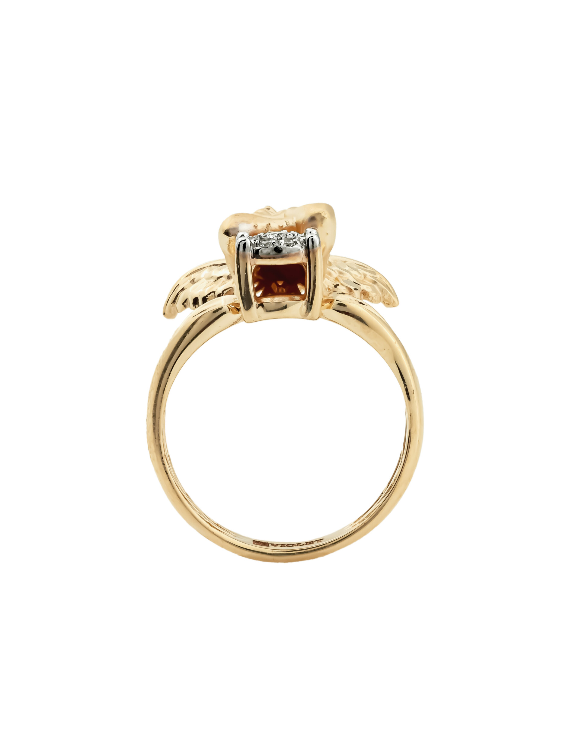 Кольцо из красного золота 585 пробы — это изысканное ювелирное украшение, которое станет воплощением нежности и утонченного вкуса. Изделие из коллекции De Luxe — Купидоны притягивает взгляд своей оригинальной концепцией: центральный элемент дизайна выполнен в виде миловидного купидона, который словно оберегает своего владельца. Эта художественная деталь делает аксессуар по-настоящему особенным и глубоко символичным подарком.