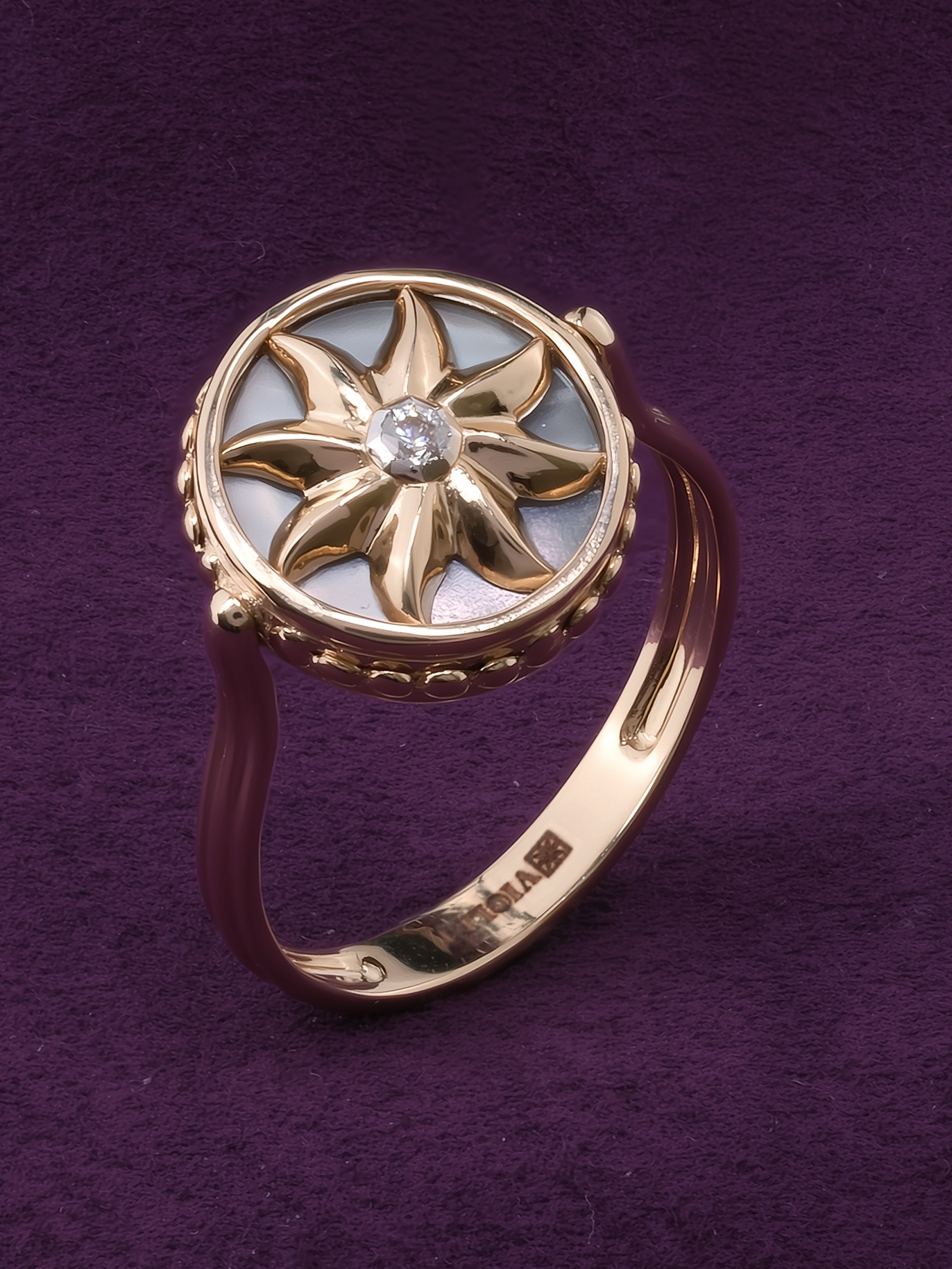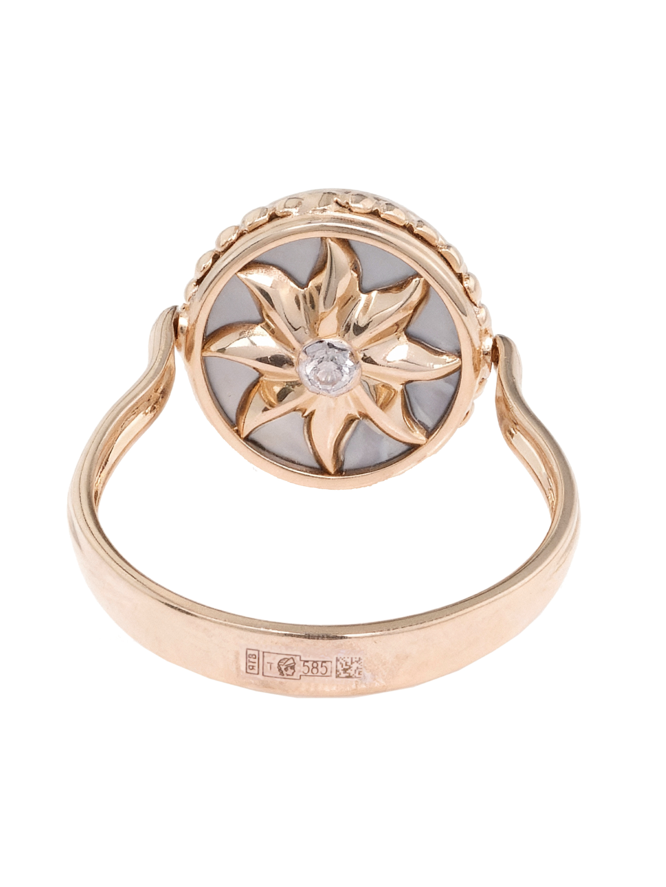 Кольцо из золота c бриллиантами, ониксом и перламутром