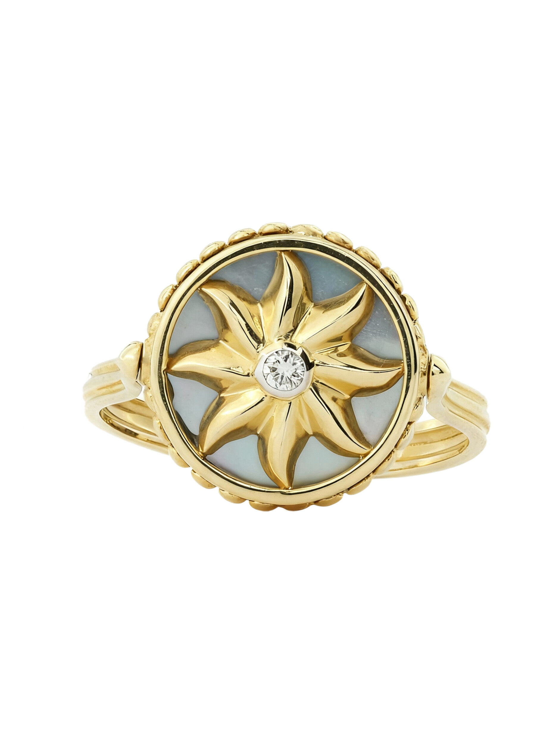 Кольцо из лимонного золота c бриллиантами, лазуритом и перламутром