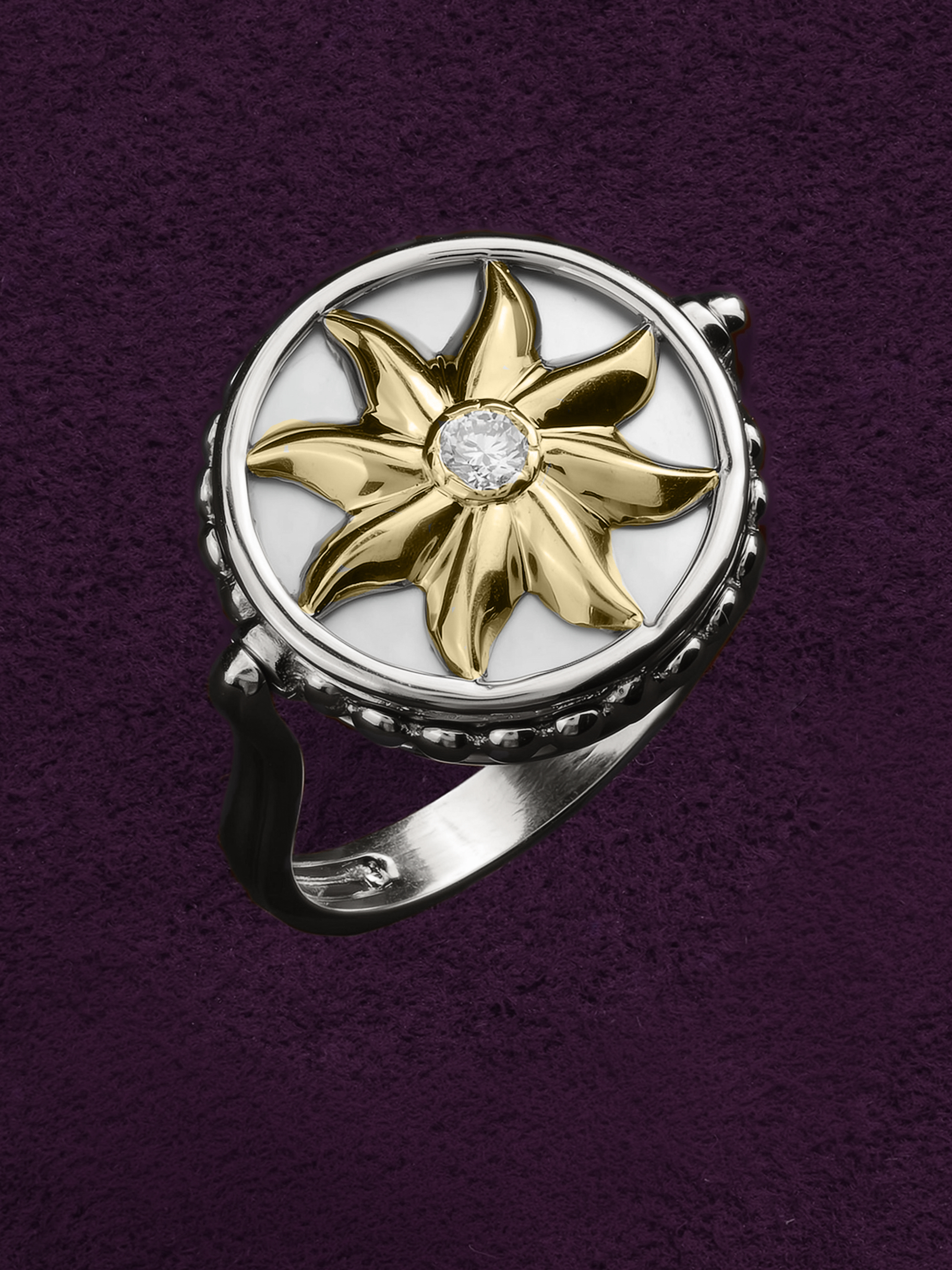 Элегантное кольцо из коллекции De Luxe — Солнце и Луна воплощает в себе мистическую красоту ночного неба и станет эффектным акцентом в вашем образе. Украшение выполнено из благородного белого золота 585 пробы, которое подчеркивает глубину контрастных вставок. Дизайн изделия объединяет символику солнца и луны, создавая выразительную композицию, подходящую как для женщин, так и для мужчин.