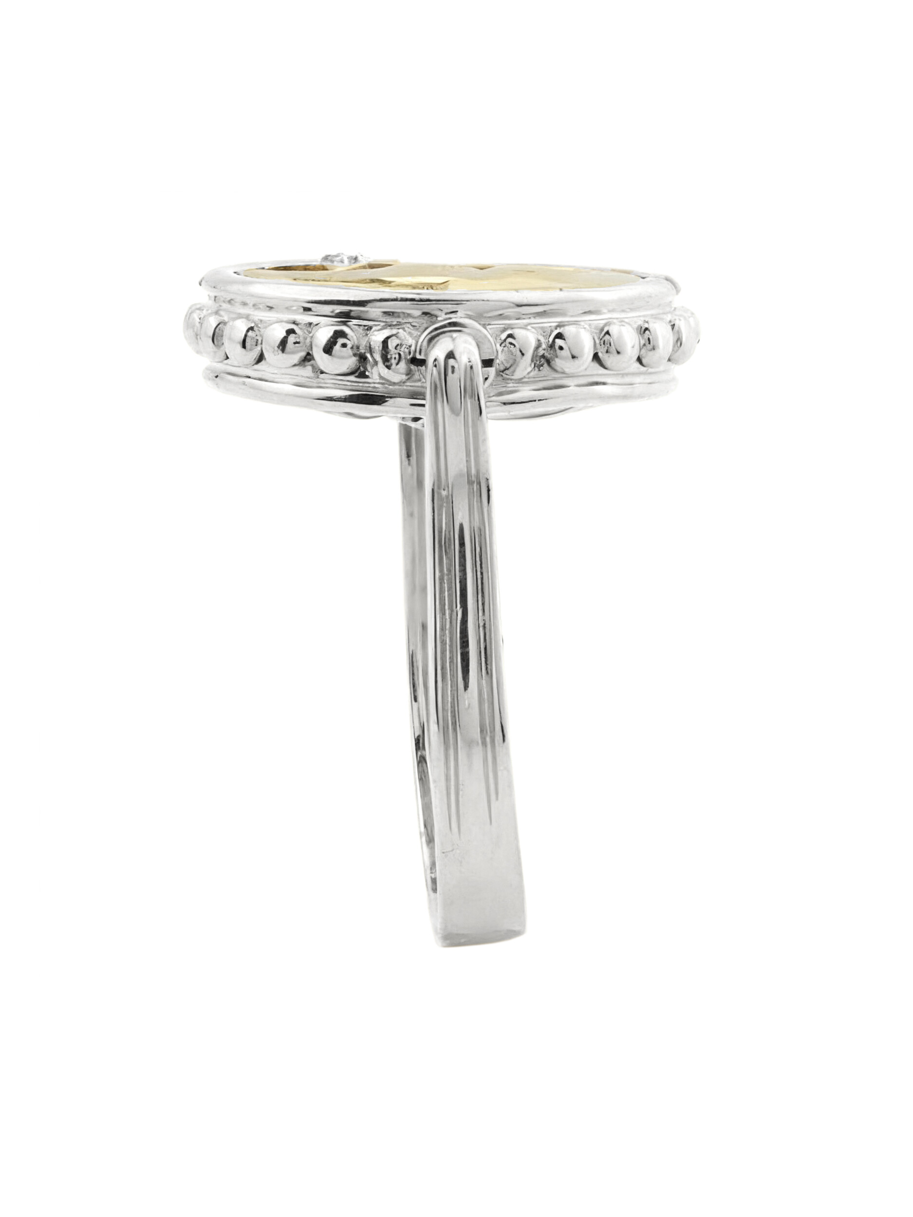Кольцо из белого золота c бриллиантами, ониксом и перламутром