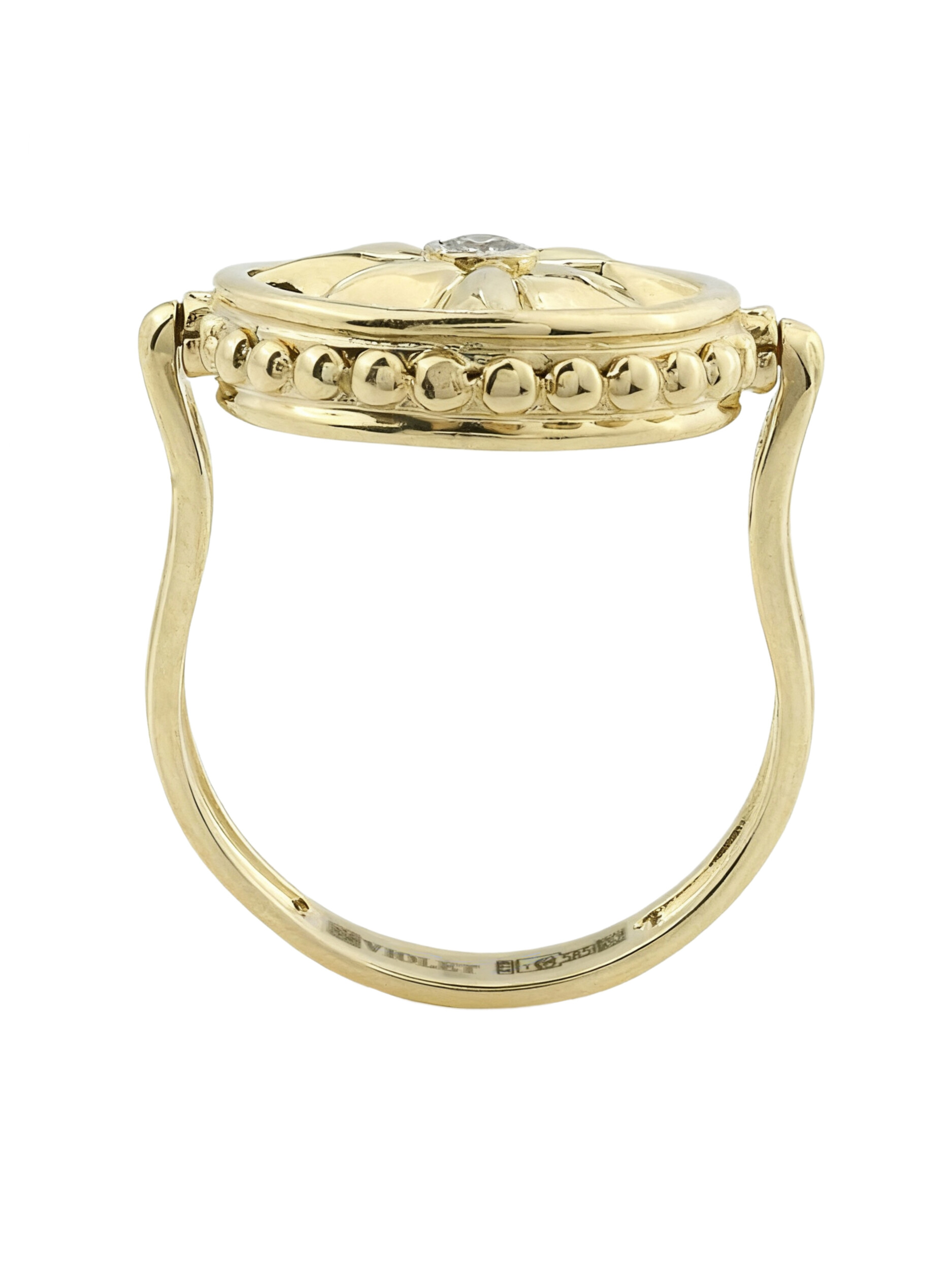 Это универсальное кольцо одинаково гармонично дополнит образ как для женщин, так и для мужчин, подчеркивая статус и тонкий вкус своего обладателя. Конструкция изделия продумана до мелочей: вращающийся элемент добавляет динамики и необычности, превращая украшение в настоящий предмет внимания. Данное кольцо представлено в широкой размерной сетке от 15 до 23, что позволяет легко подобрать идеальный вариант для любого пальца. Благодаря своему уникальному стилю, украшение может стать частью комплекта, создавая завершенный и продуманный ювелирный ансамбль. Это ювелирное изделие — выбор тех, кто ценит символизм и высокое качество исполнения в повседневных аксессуарах.