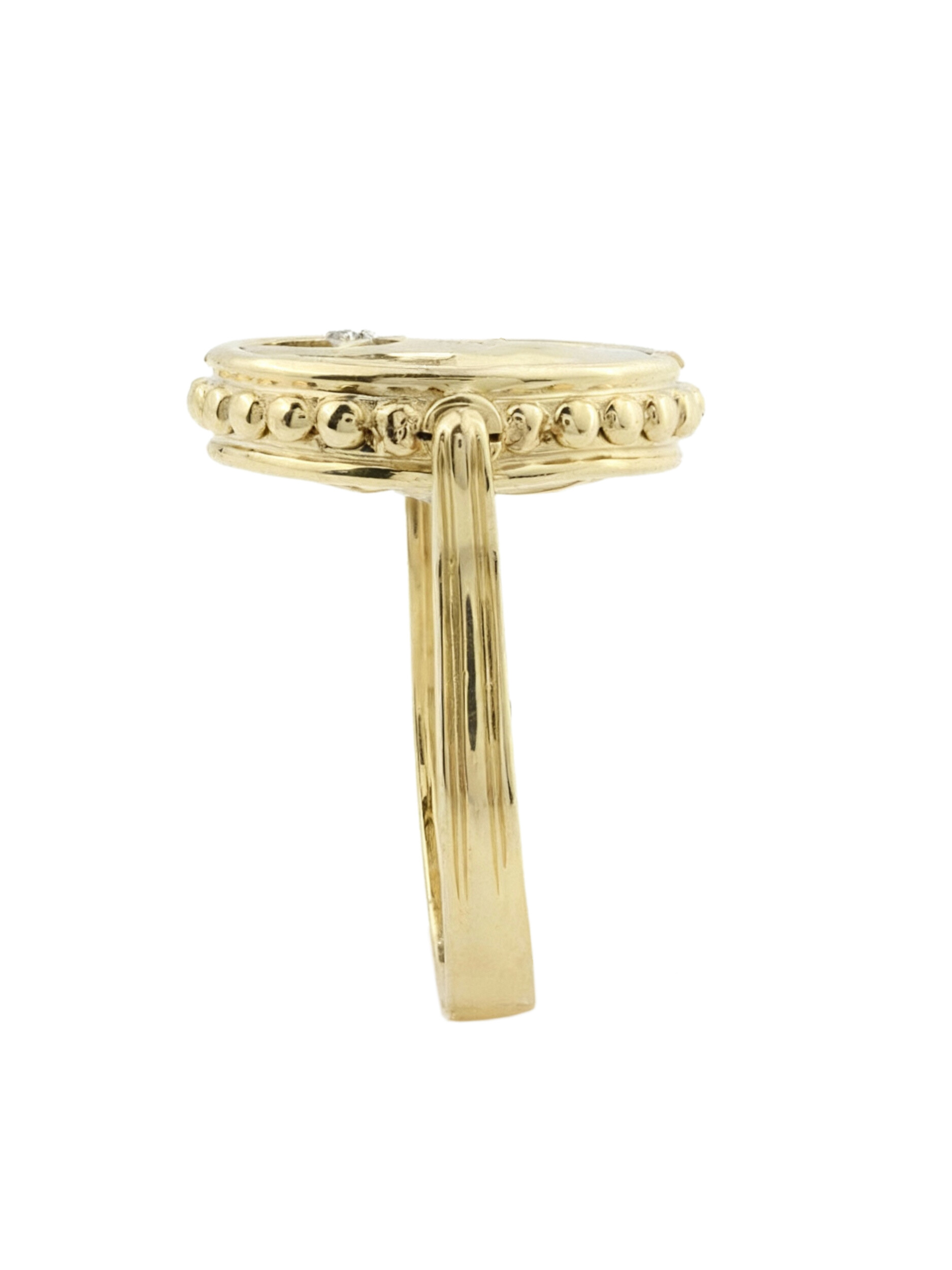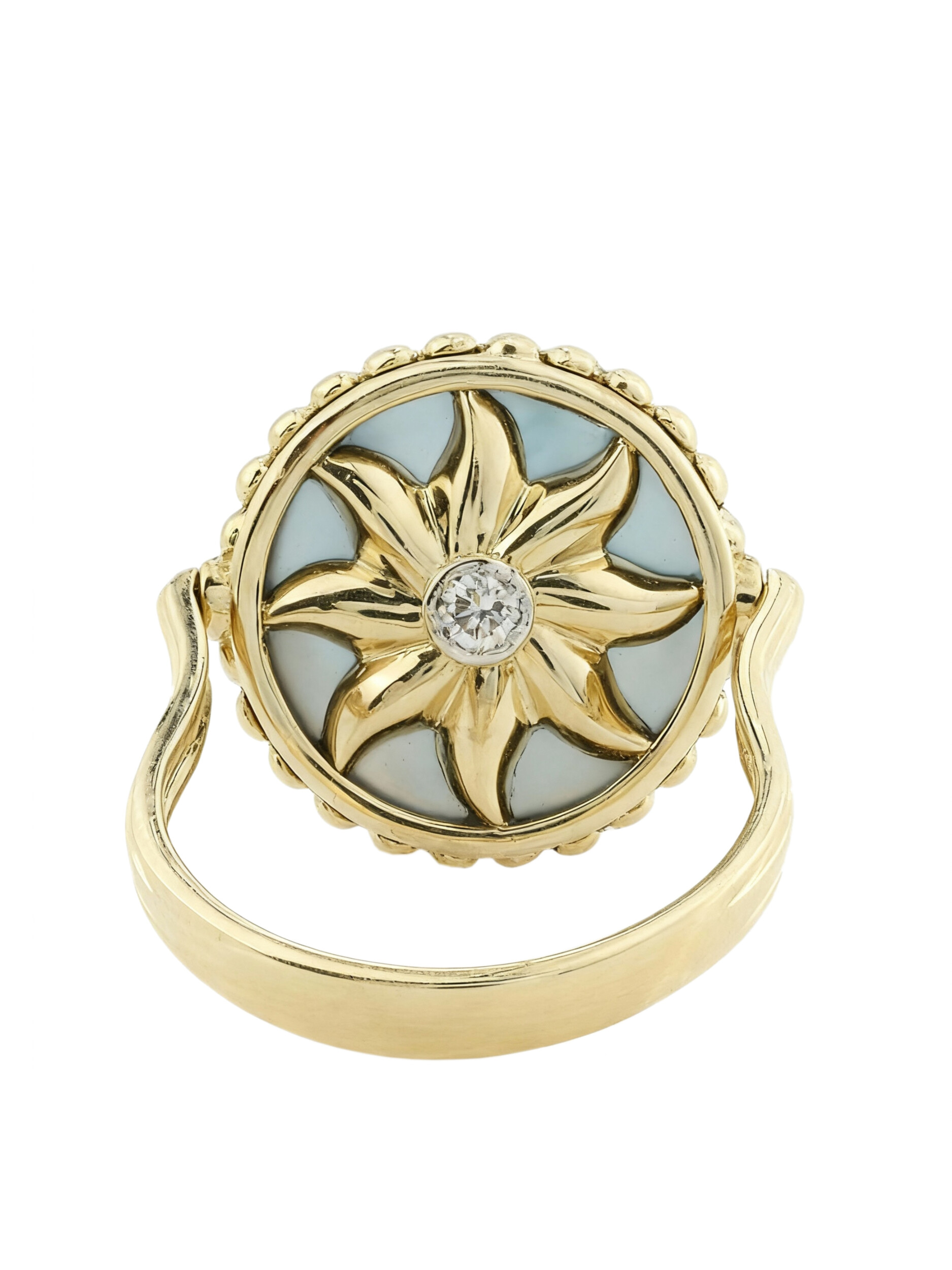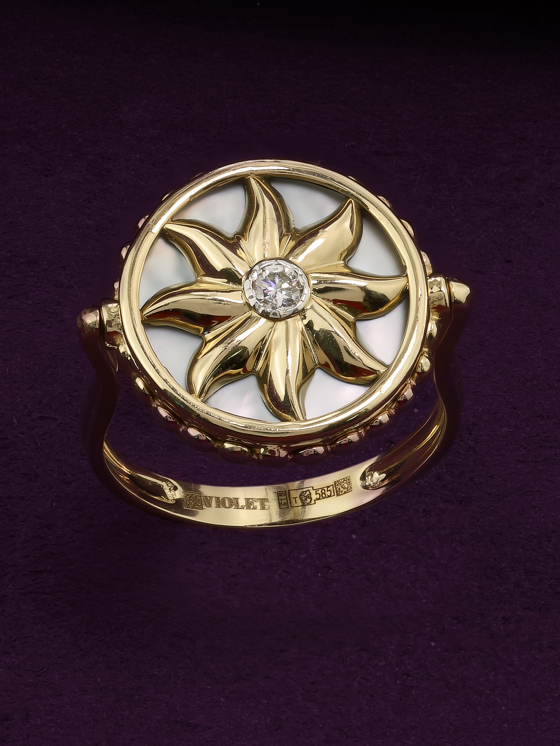 Кольцо из лимонного золота c бриллиантами, лазуритом и перламутром