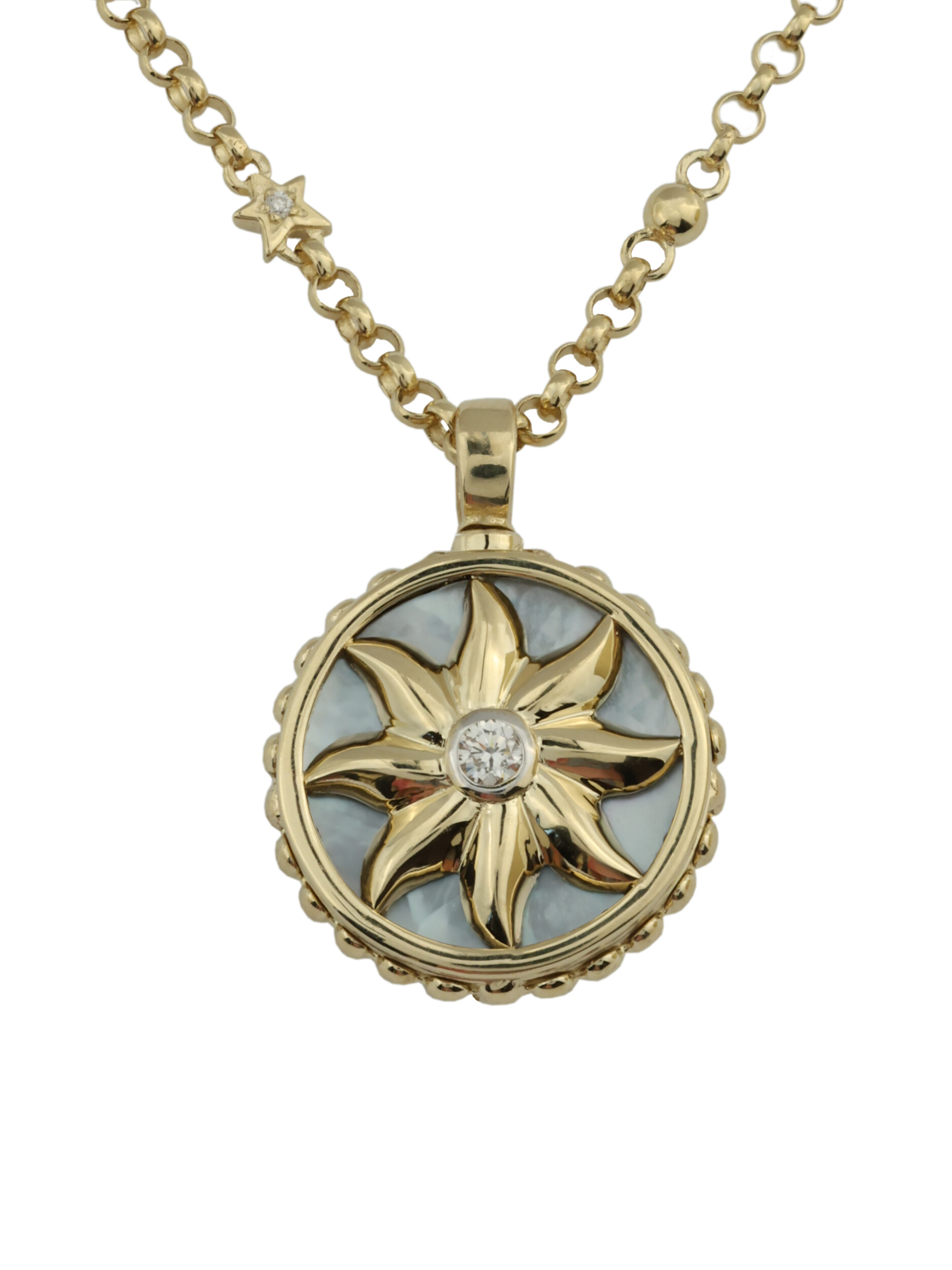 Колье из лимонного золота c бриллиантами, лазуритом и перламутром