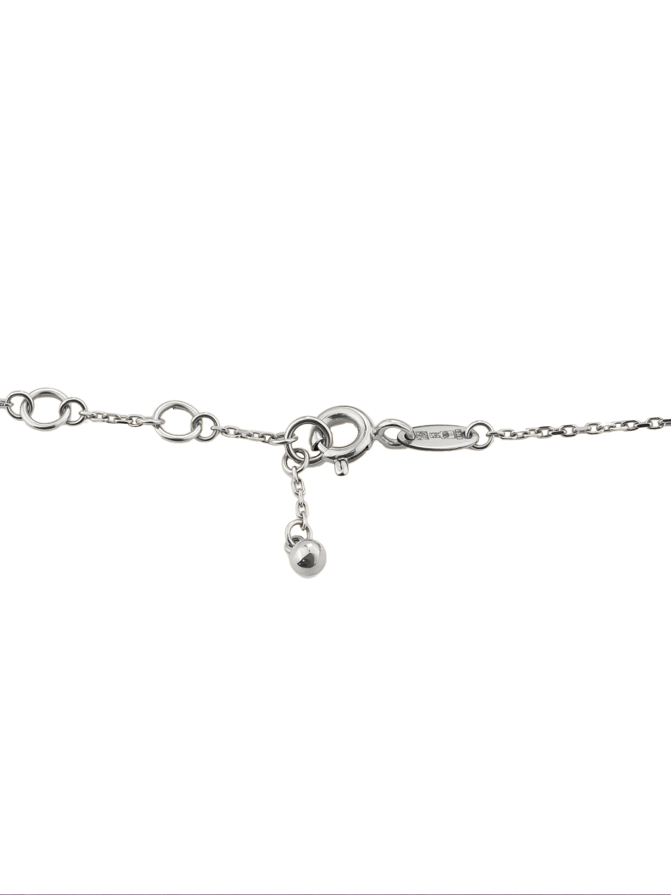 В сердце браслета расположена круглая вставка из черного оникса, на фоне которой эффектно выделяются золотые элементы. Дизайн дополнен двумя вставками: сияющим круглым бриллиантом, добавляющим нотку роскоши, и черным ониксом, создающим гармоничный контраст. Белое золото идеально обрамляет темный минерал, делая аксессуар универсальным и статусным решением.
