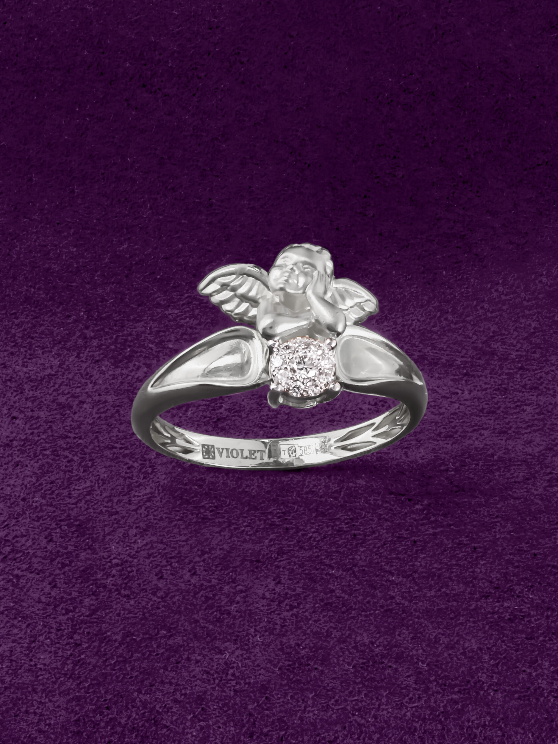 Кольцо из белого золота 585 пробы c бриллиантами