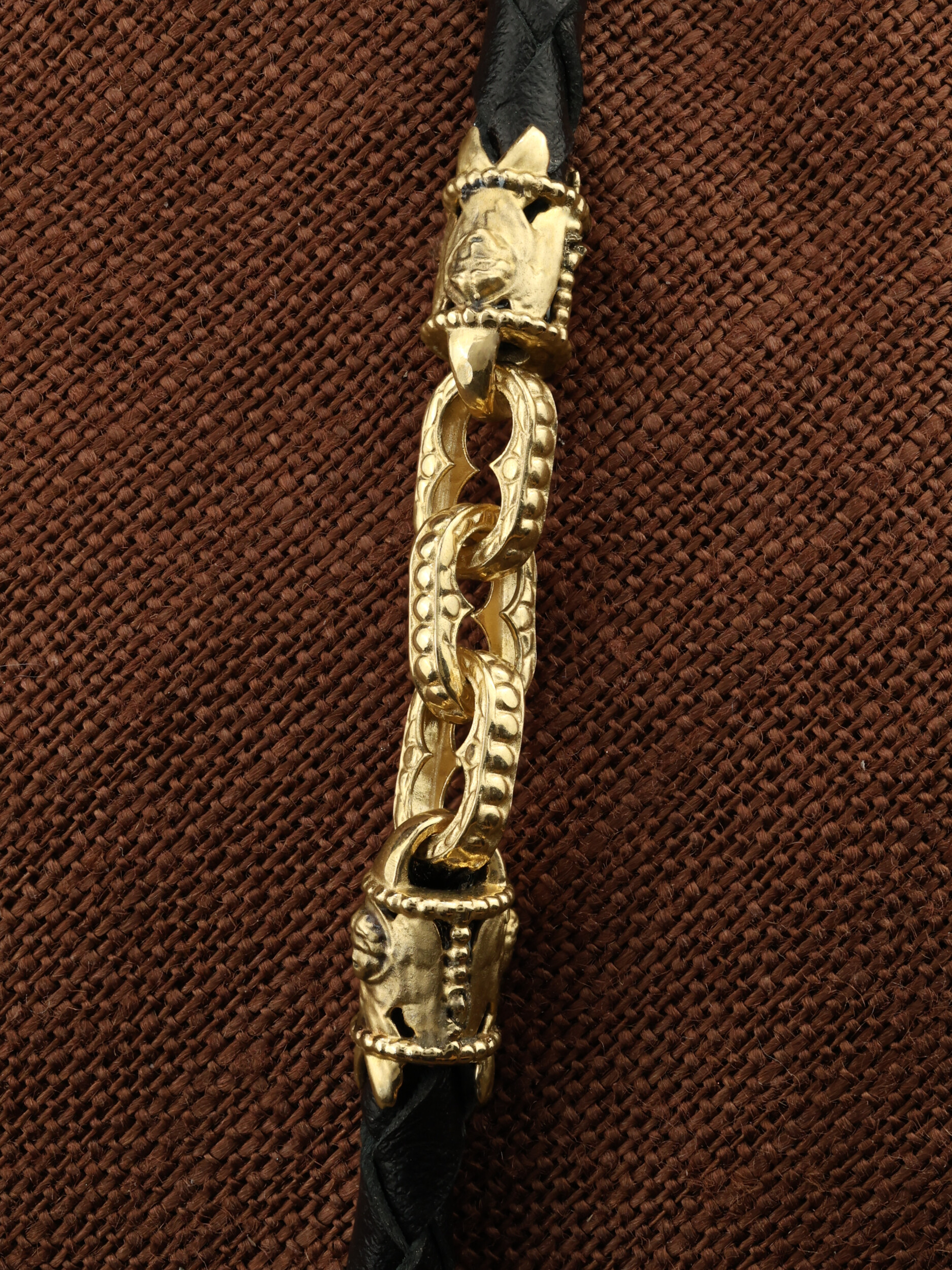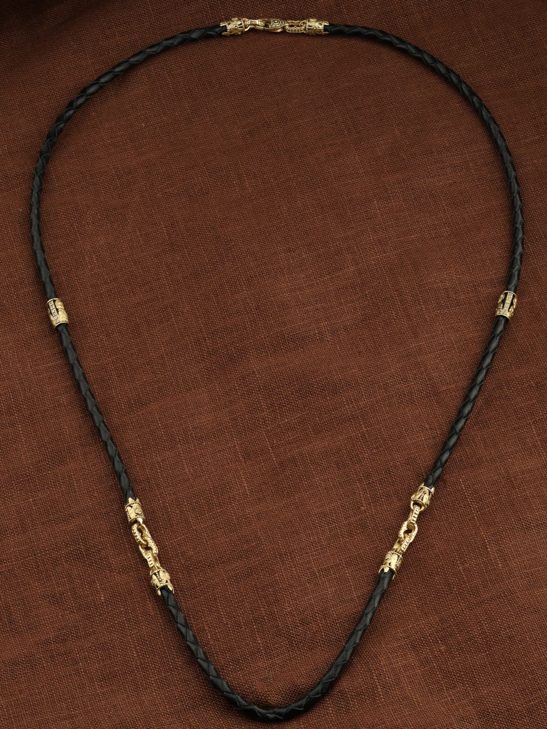 Цепь-шнурок кожа из лимонного золота 585 пробы c кожаным шнурком