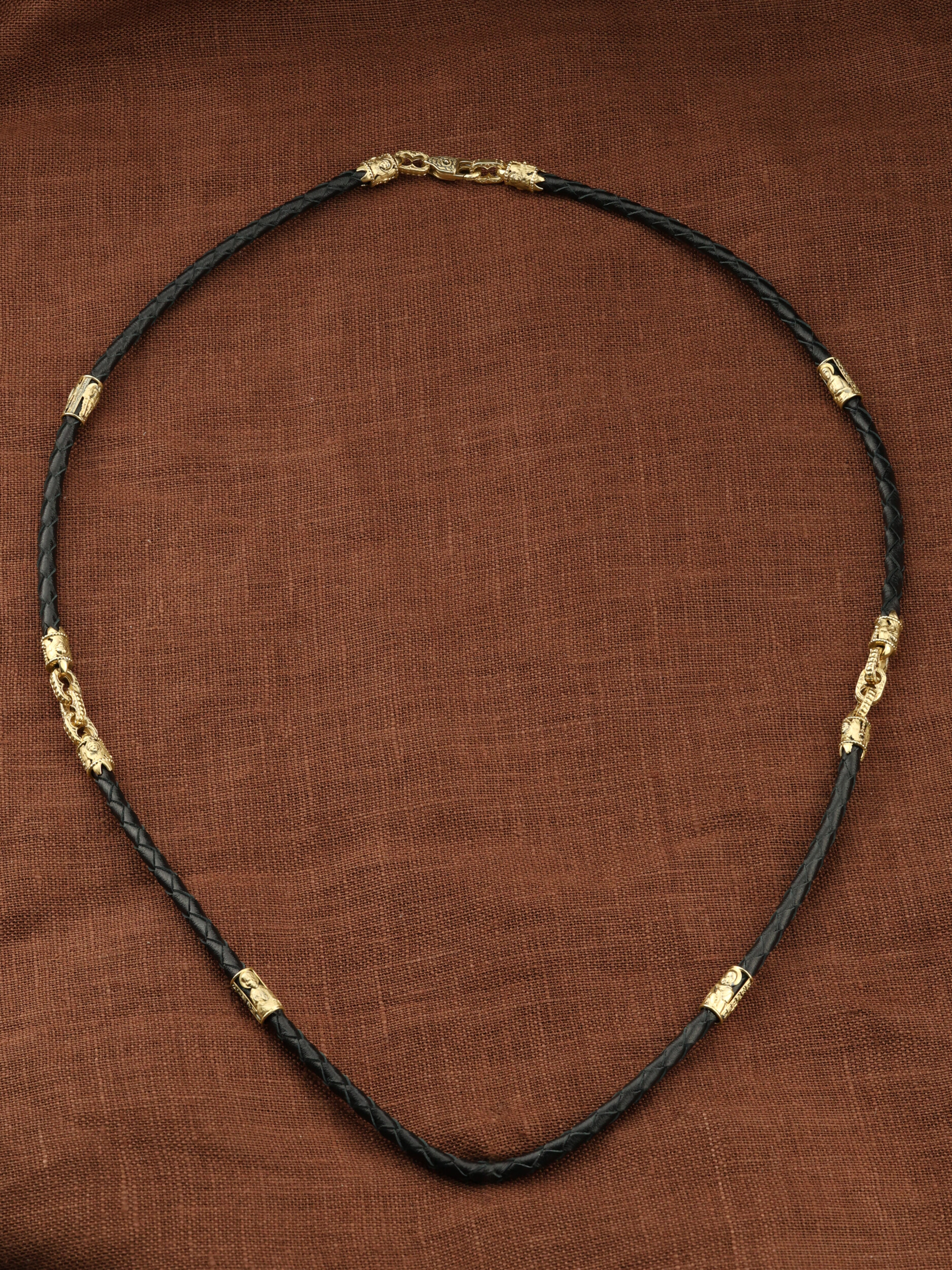 Цепь-шнурок кожа из лимонного золота 585 пробы c кожаным шнурком