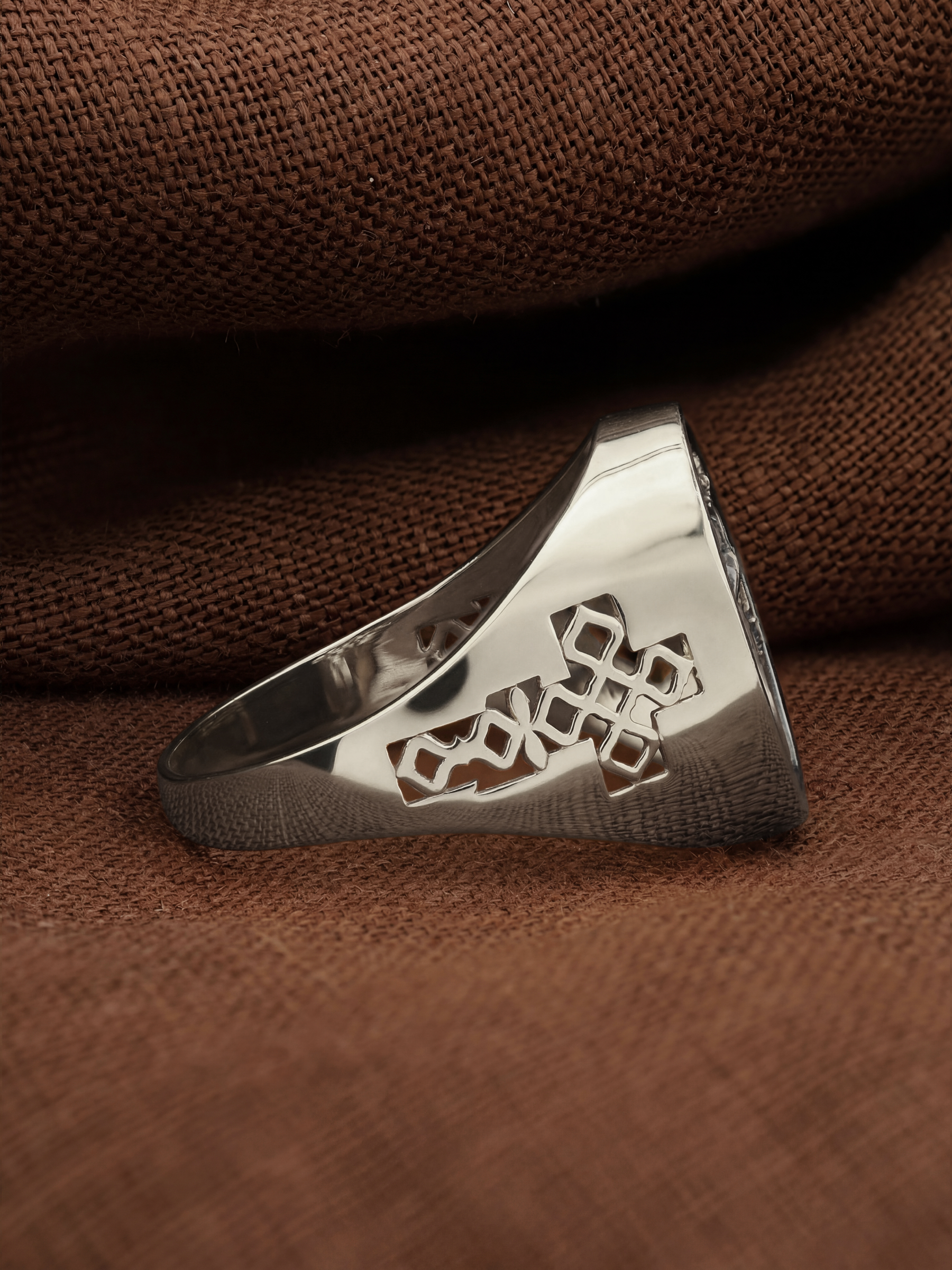 С внутренней стороны кольца выгравирована молитва: «Господи, Иисусе Христе, Сыне Божий, помилуй меня грешнаго.»