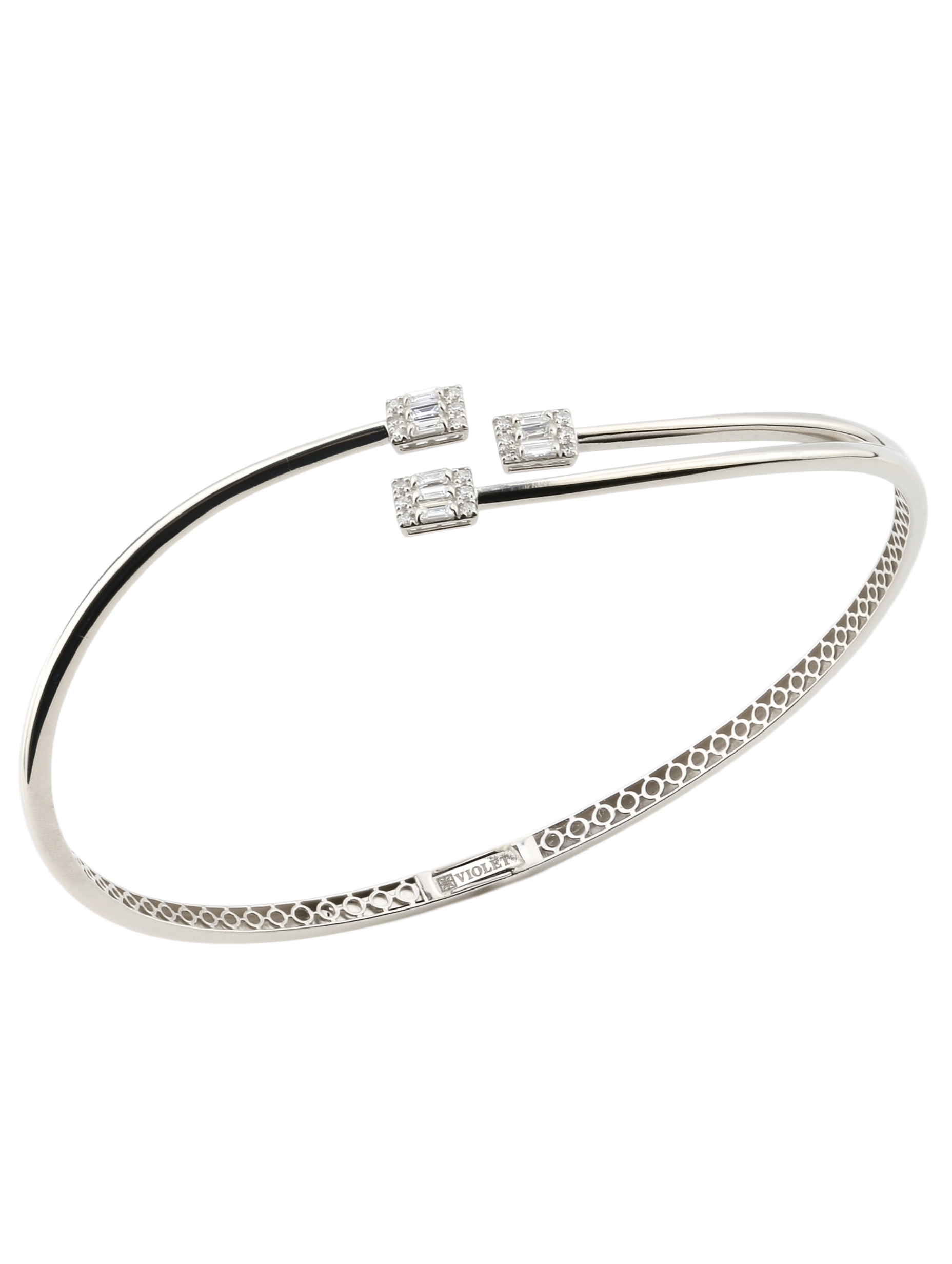 Элегантный браслет из белого золота 585 пробы — это воплощение современного ювелирного искусства, созданное для тех, кто ценит лаконичность и благородный блеск драгоценных металлов. Данное украшение из коллекции De Luxe Бриллианты — Baguette отличается оригинальным дизайном: разомкнутая форма браслета дополнена изысканными акцентами, которые приковывают взгляд своей геометрической выверенностью. Белое золото идеально подчеркивает холодное сияние вставок, создавая гармоничный и сдержанный образ.