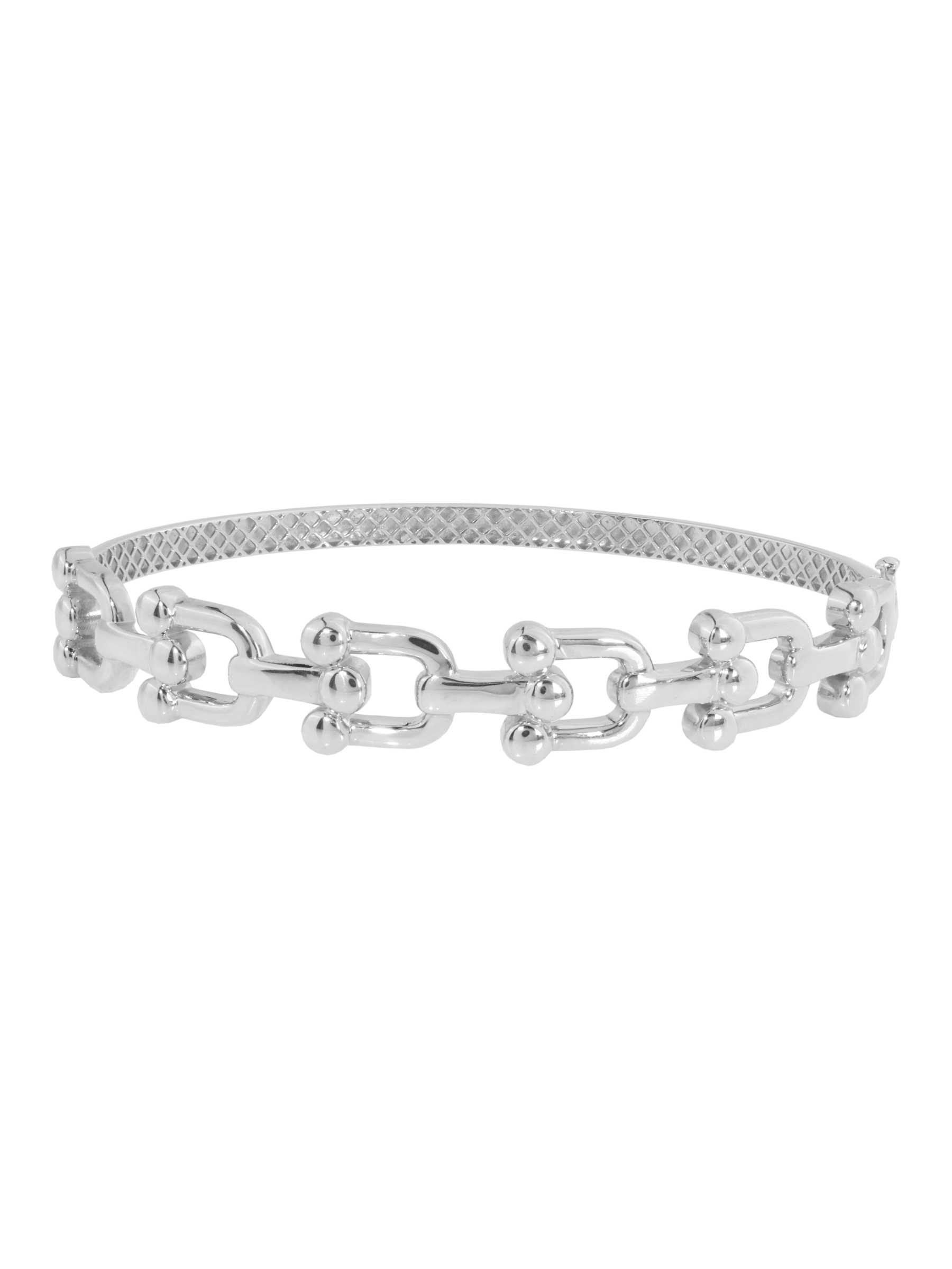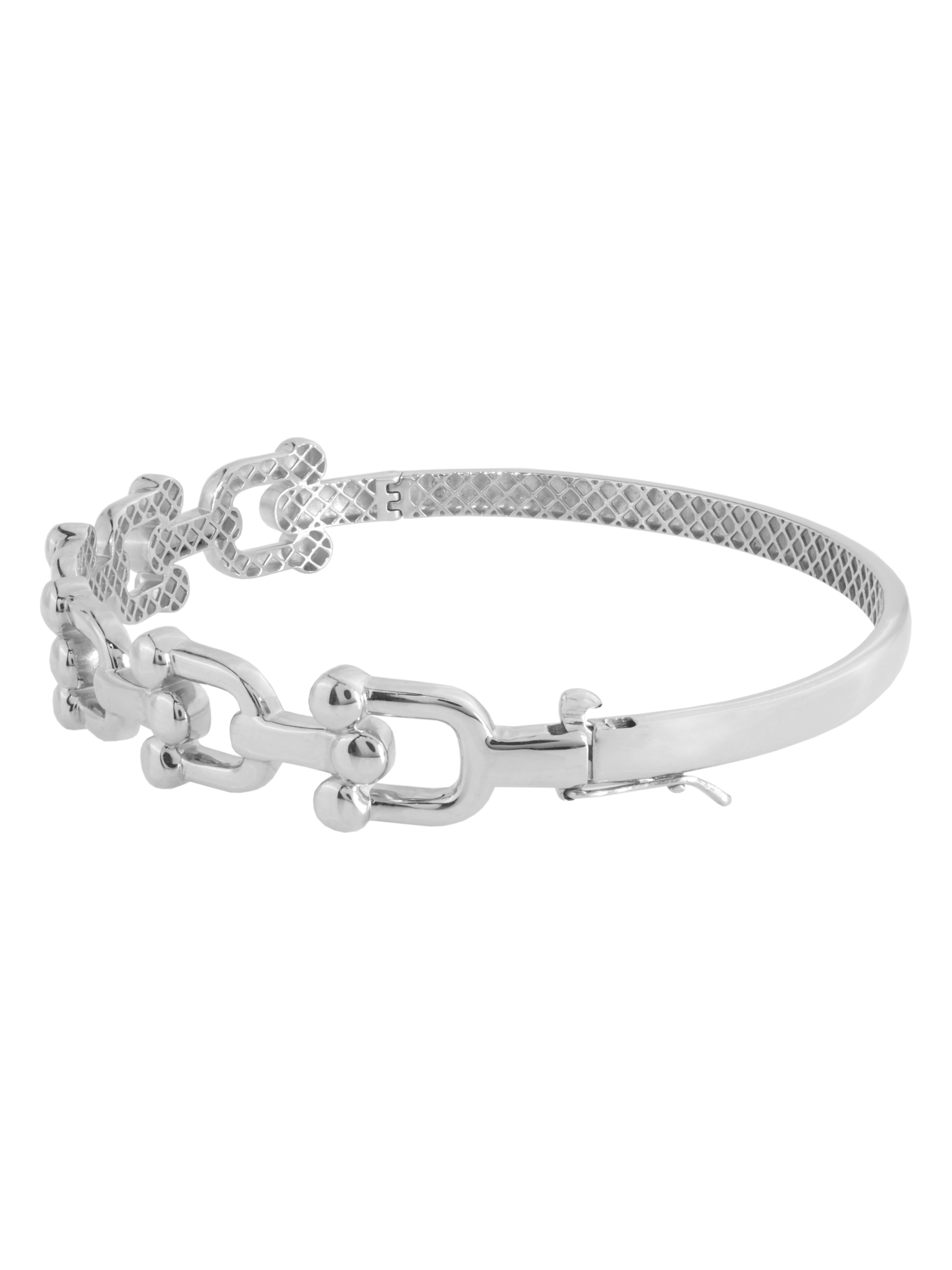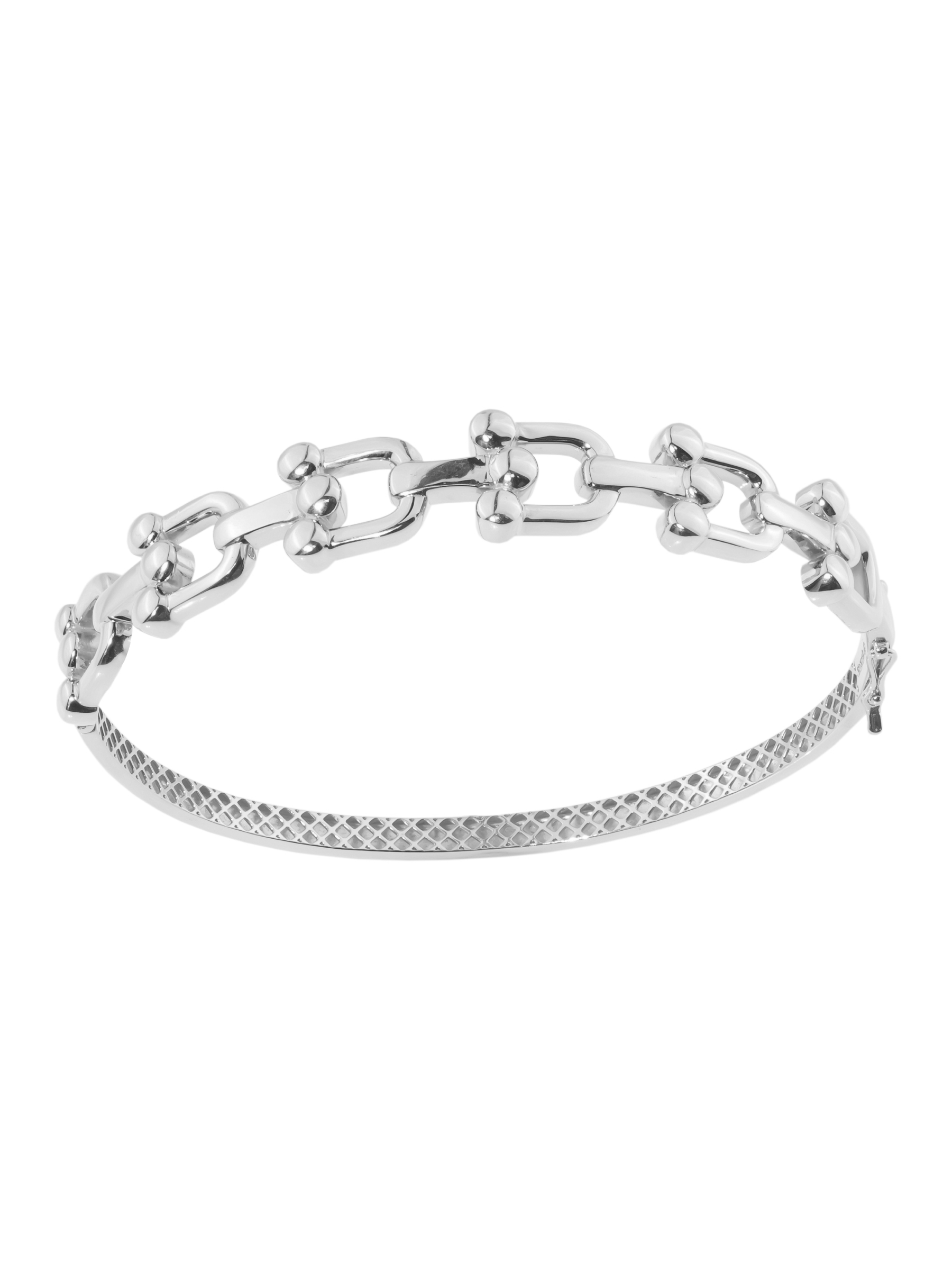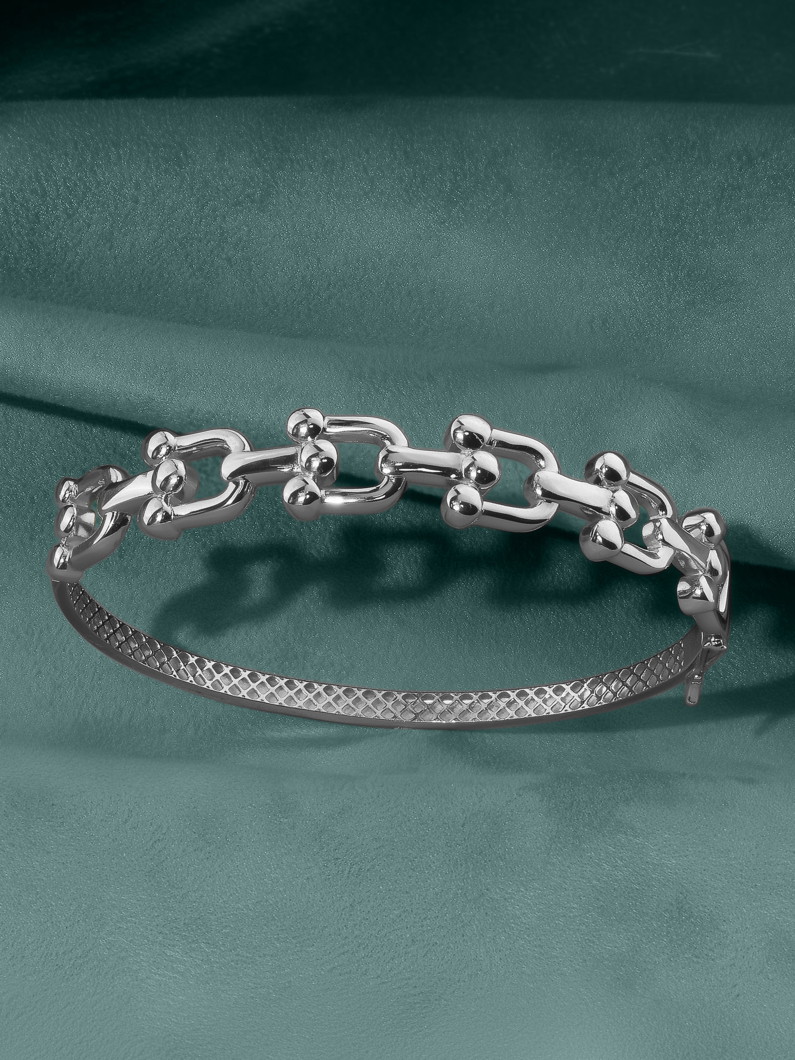 Универсальный дизайн изделия делает его подходящим как для женщин, так и для мужчин, позволяя создавать смелые и современные комбинации. Браслет обладает идеальным 17 размером, обеспечивающим комфортную посадку. Белое золото 585 пробы придает украшению долговечность и благородный цвет, который не теряет своей актуальности со временем. Это изделие станет великолепным дополнением к повседневному или вечернему гардеробу.