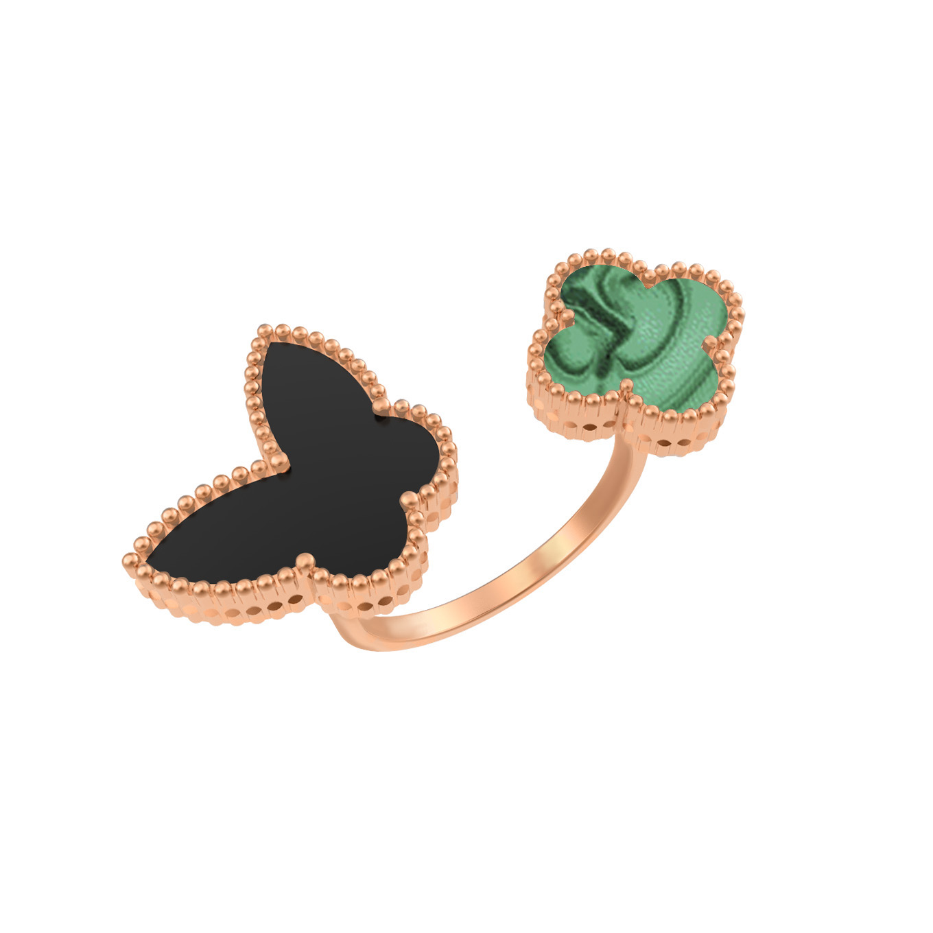 Кольцо из красного золота 585 пробы c ониксом и малахитом
