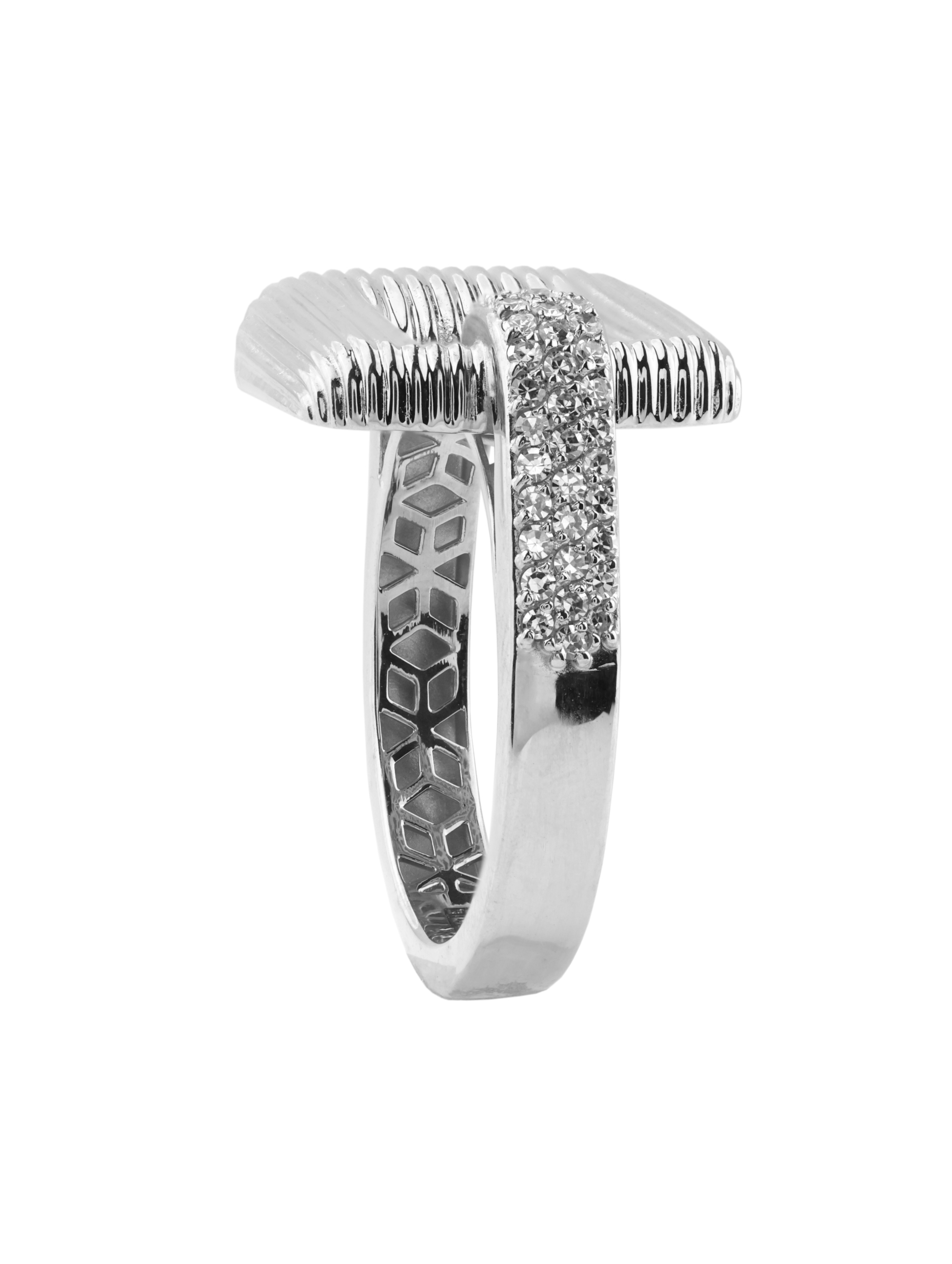 Элегантное кольцо из белого золота 585 пробы из коллекции Vioretty — Milano станет безупречным акцентом вашего образа. Это ювелирное изделие воплощает в себе изысканный итальянский стиль, сочетая в себе строгость линий и роскошное сияние драгоценных камней. Основа из благородного белого металла с глубокой рельефной фактурой создает интересный визуальный контраст с изящным акцентом из 37 бриллиантов круглой огранки. Белоснежные камни гармонично подчеркивают холодный блеск золота, придавая украшению особое статусное звучание.