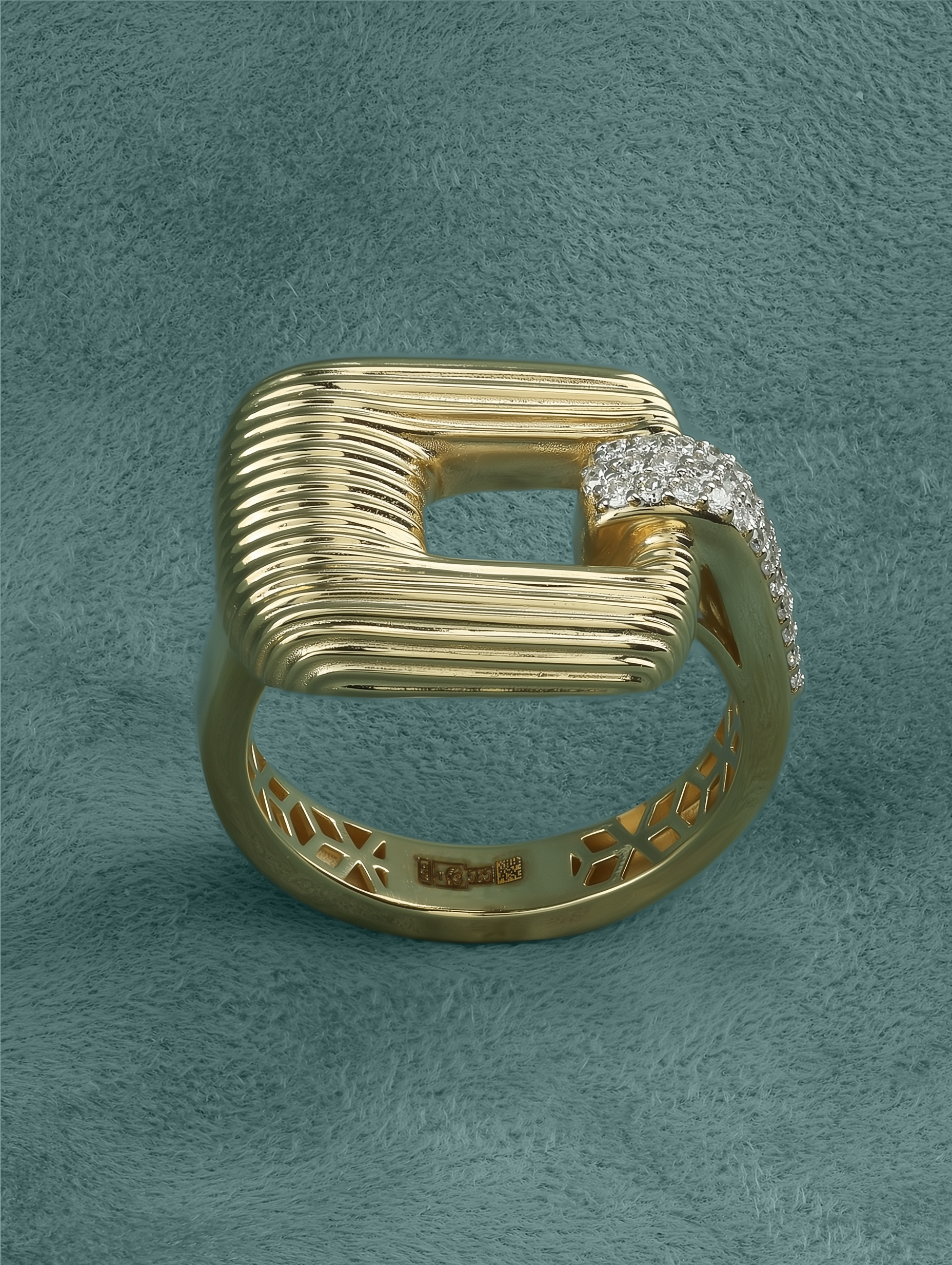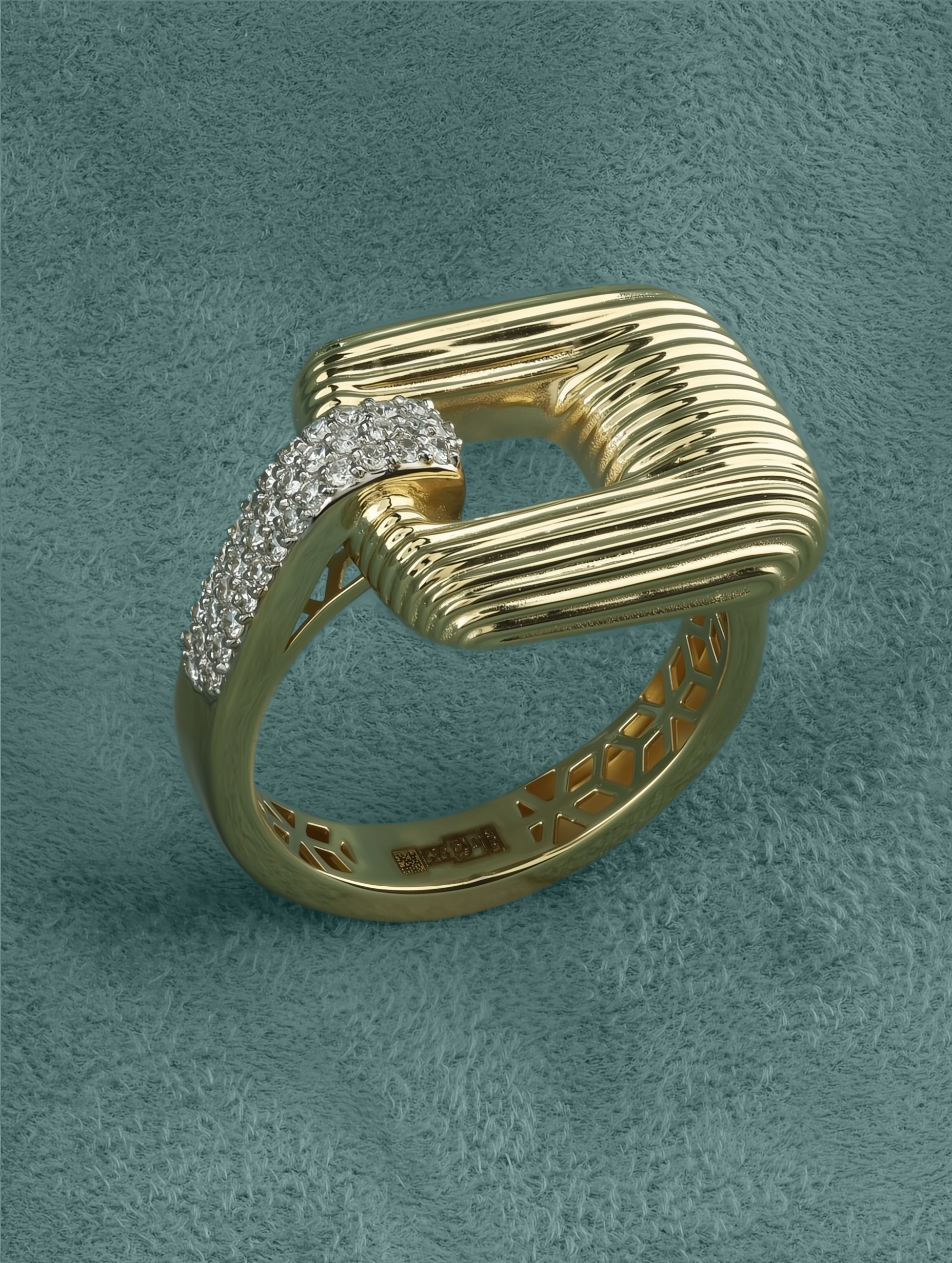 Кольцо из лимонного золота 585 пробы c бриллиантами