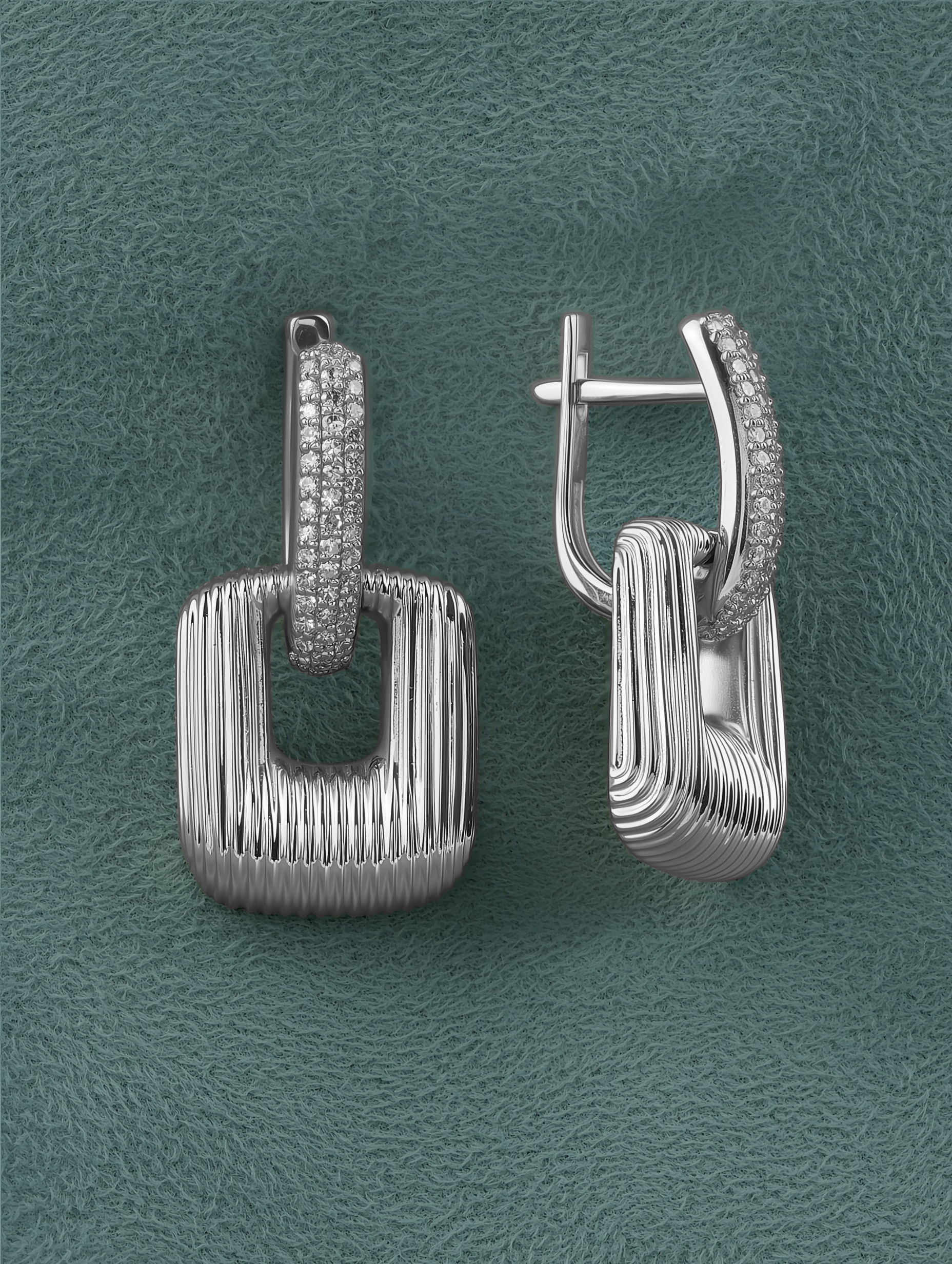 В украшении использованы 92 бриллианта круглой формы с чистым белым цветом вставок, которые при каждом движении создают эффектную игру света. Эти серьги — не просто аксессуар, а стилеобразующий акцент, который подойдет как женщинам, так и мужчинам, предпочитающим современные и статусные украшения. Универсальность дизайна позволяет носить их как самостоятельный аксессуар, так и в составе комплекта, создавая завершенный и продуманный ювелирный ансамбль. Качественная проработка деталей и благородные материалы делают данное изделие прекрасным выбором для ценителей высокого ювелирного искусства.