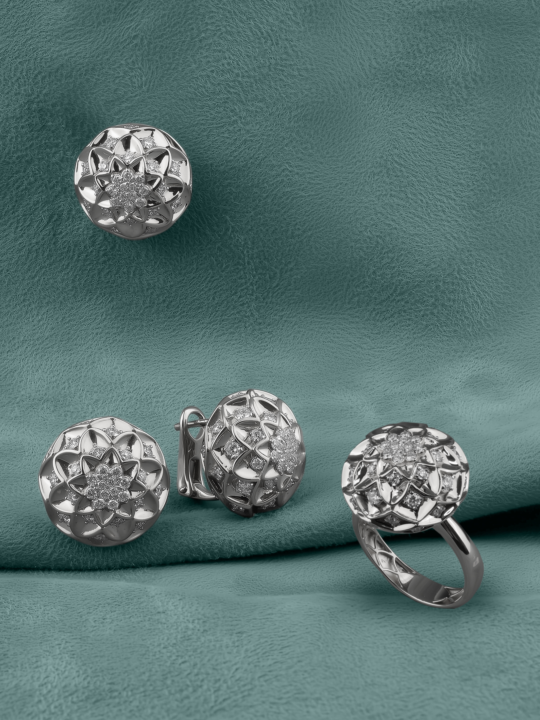 Элегантные серьги из белого золота 585 пробы из коллекции Vioretty — Georginy станут воплощением утонченного вкуса и безупречного стиля. В основе дизайна лежит изысканный флористический мотив: ювелиры создали выразительные цветы, где холодный блеск металла гармонично сочетается с ослепительным сиянием драгоценных камней.