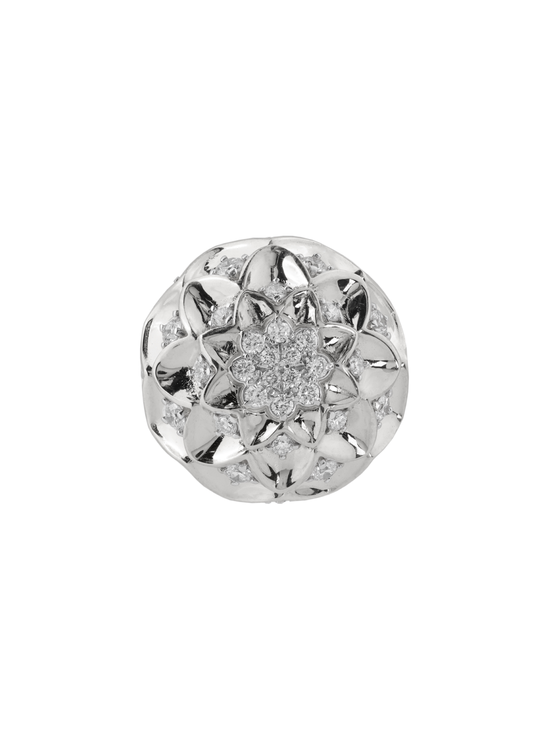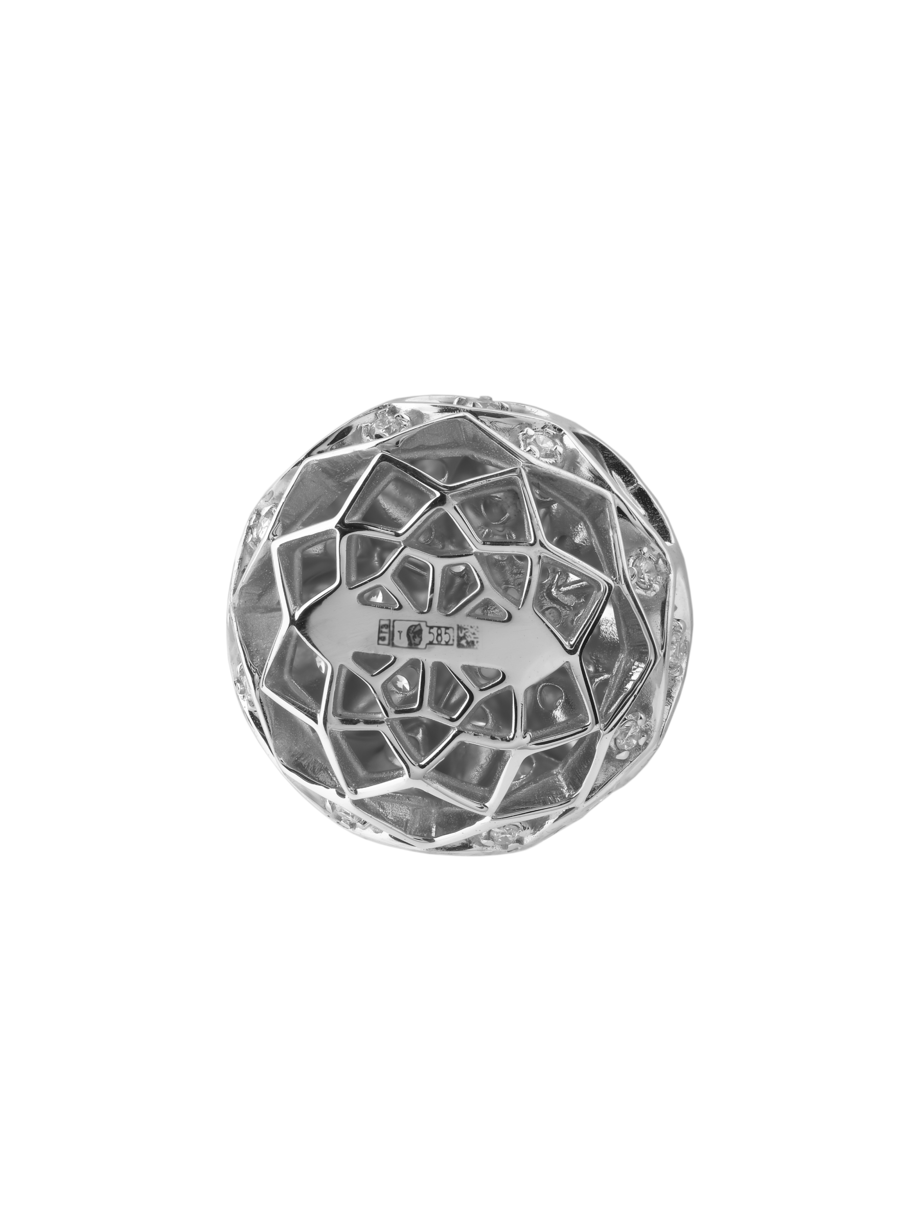 Центральная часть и лепестки украшены 42 круглыми бриллиантами с белым цветом вставок. Качественная огранка позволяет камням максимально отражать свет, создавая притягательную игру бликов. Такая подвеска универсальна и подойдет как для женщин, так и для мужчин, предпочитающих премиальные аксессуары с лаконичным, но запоминающимся дизайном. Изящная форма цветка делает изделие прекрасным дополнением к вечернему наряду или акцентным элементом повседневного образа.